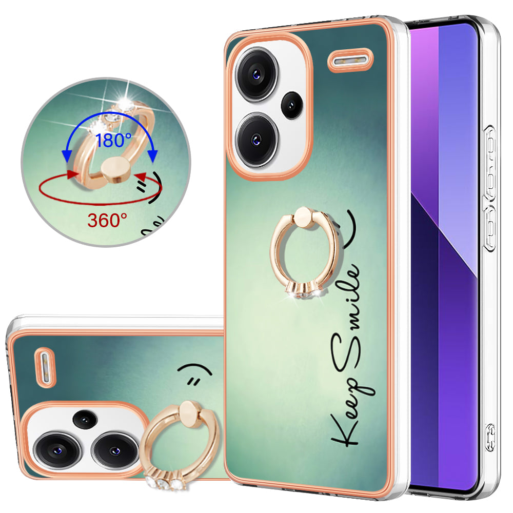 YB IMD Series-20 Style D for Xiaomi Redmi Note 13 Pro+ 5G Case with Ring Holder 2.0mm TPU Gold Edge Phone Cover - Keep Smile