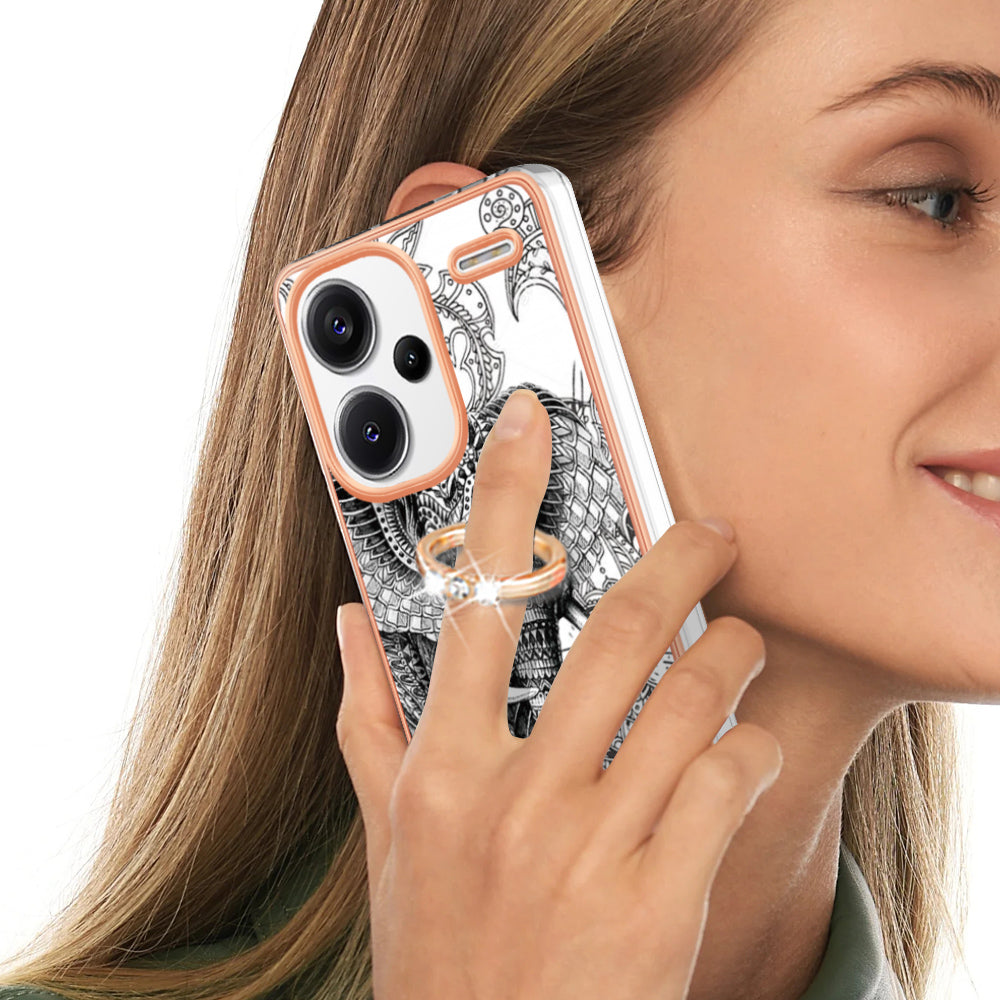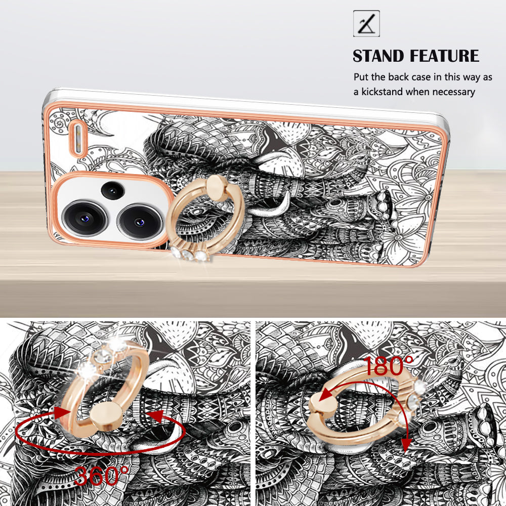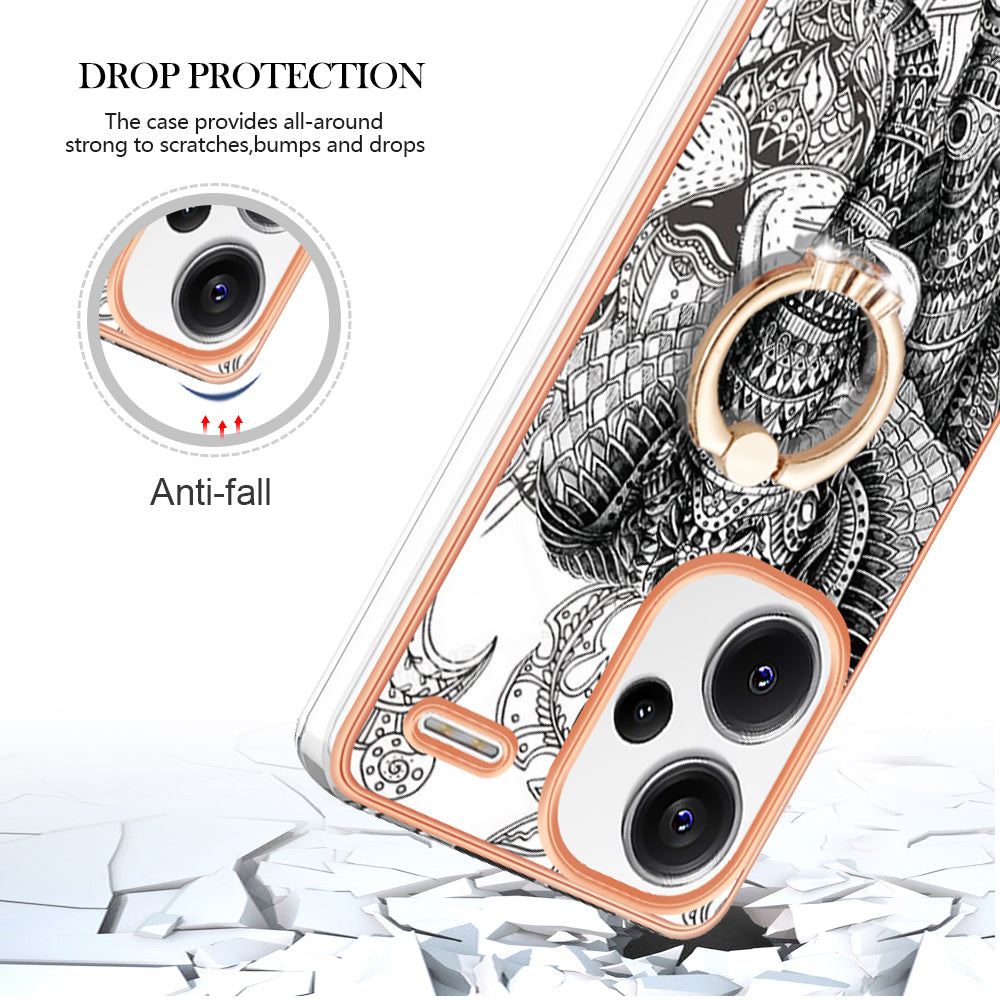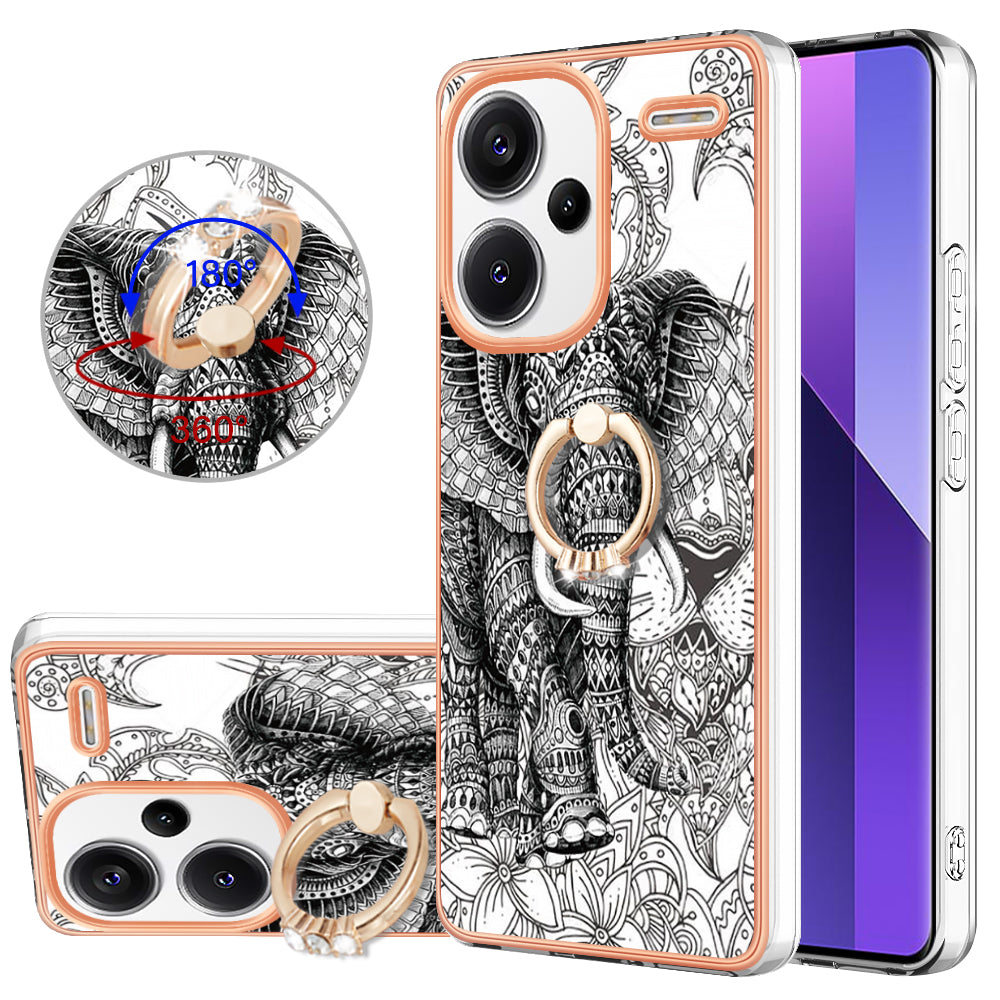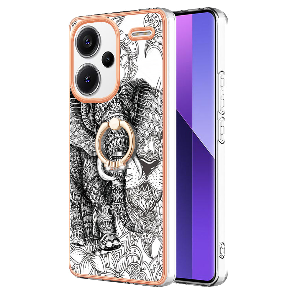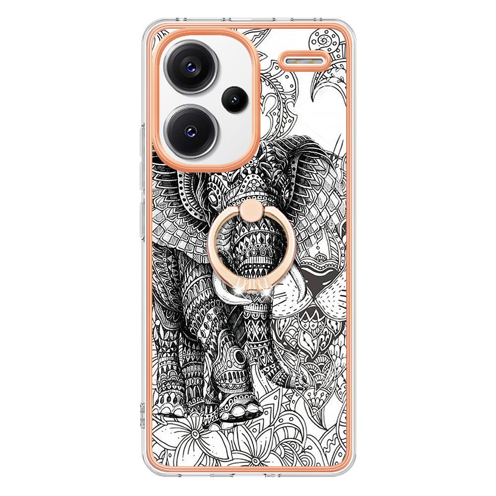YB IMD Series-20 Style D for Xiaomi Redmi Note 13 Pro+ 5G Case with Ring Holder 2.0mm TPU Gold Edge Phone Cover - Totem Elephant