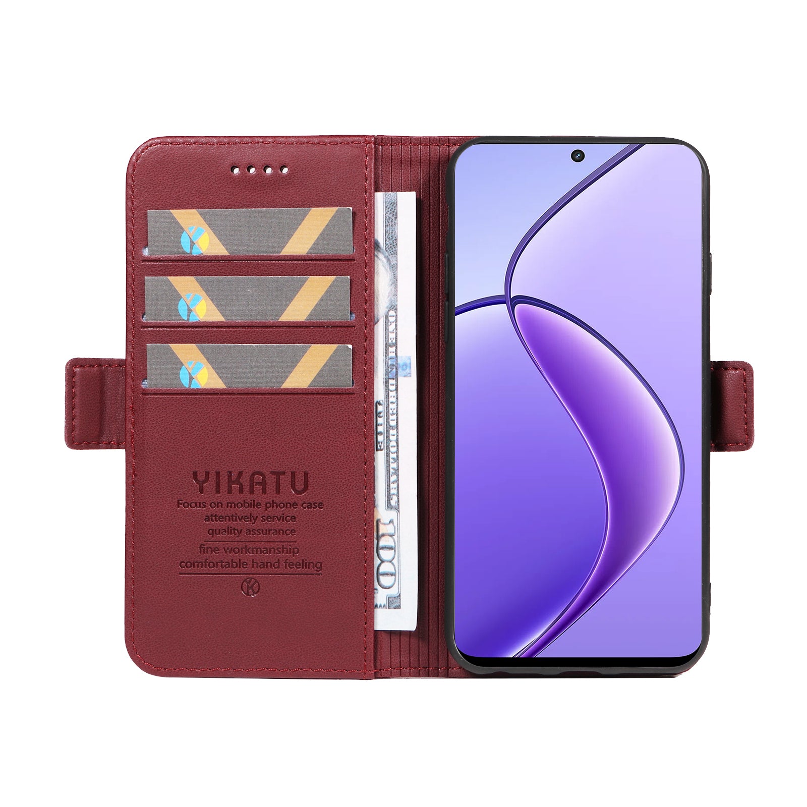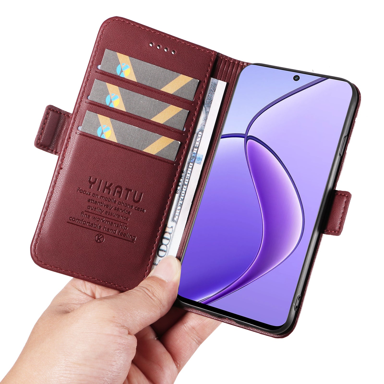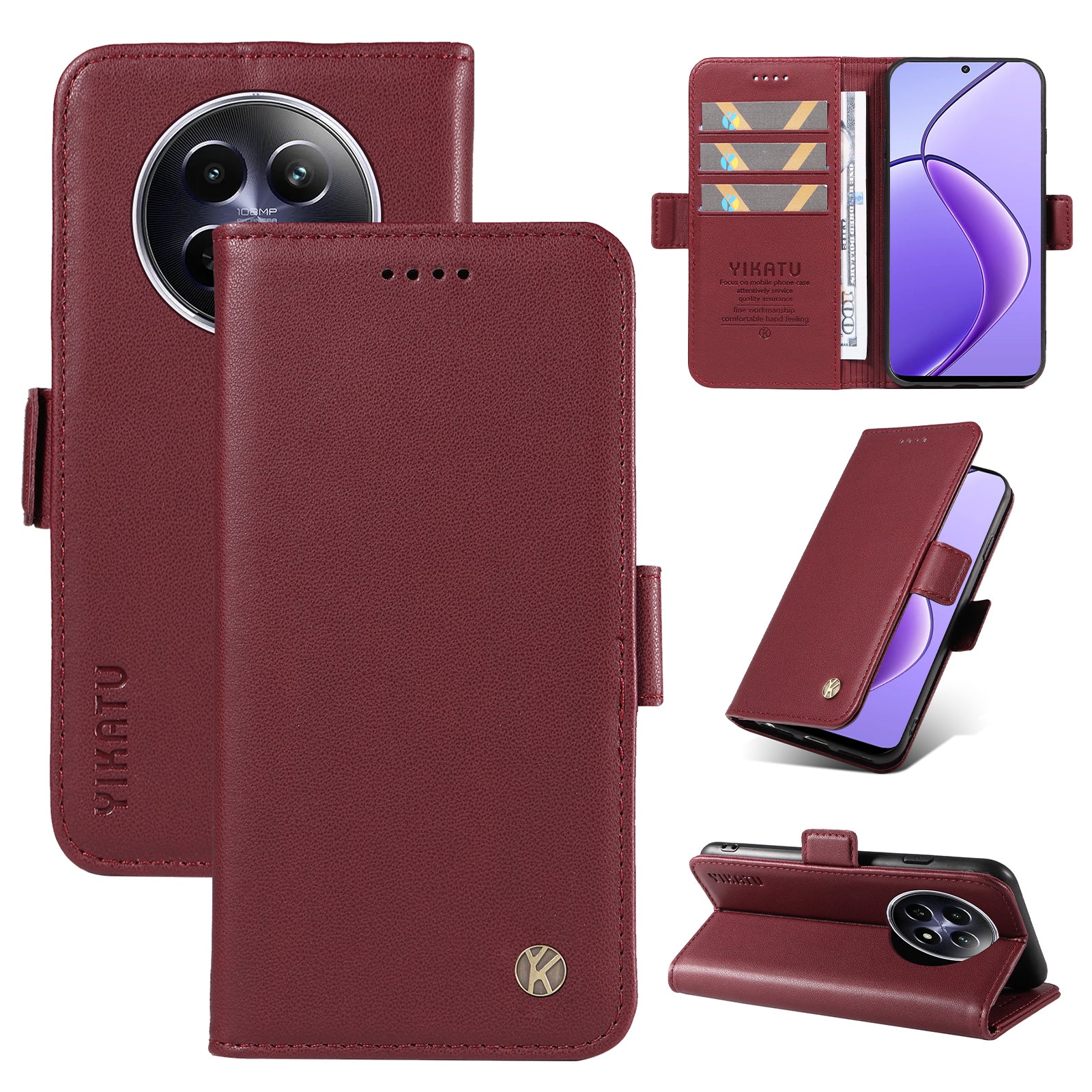 YIKATU YK-003 For Realme 12 Leather Case Wallet Cover Phone Accessories Distributors - Wine Red