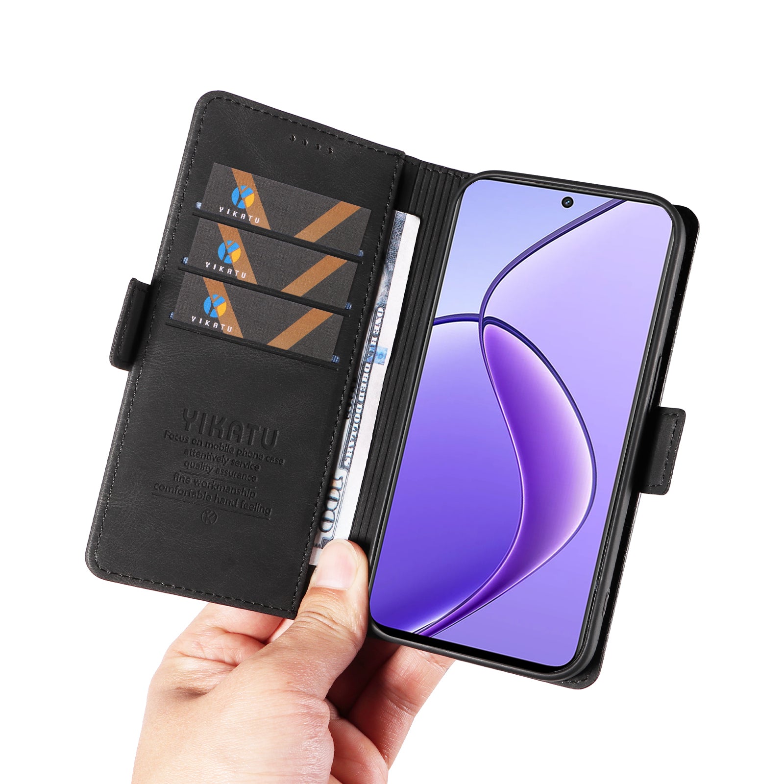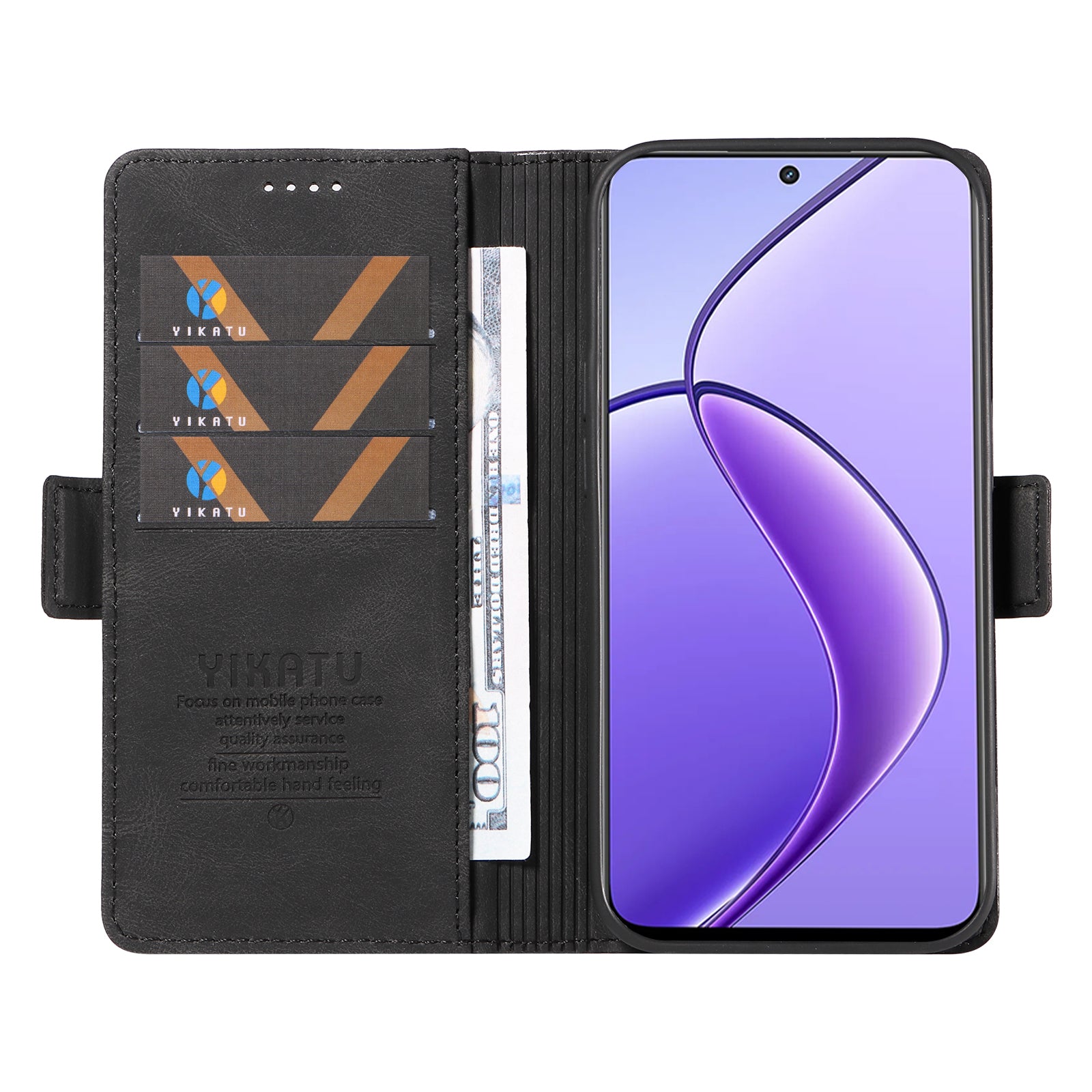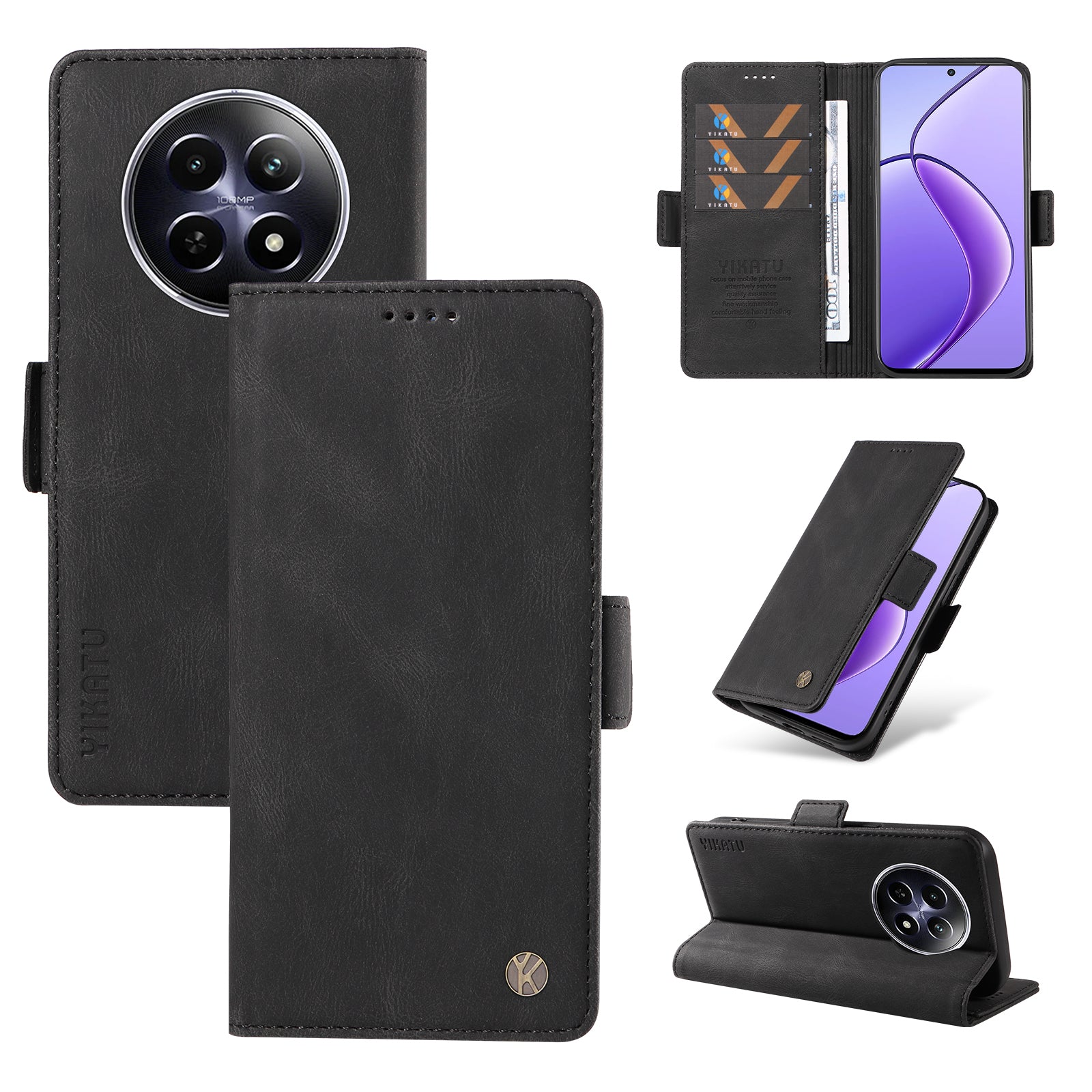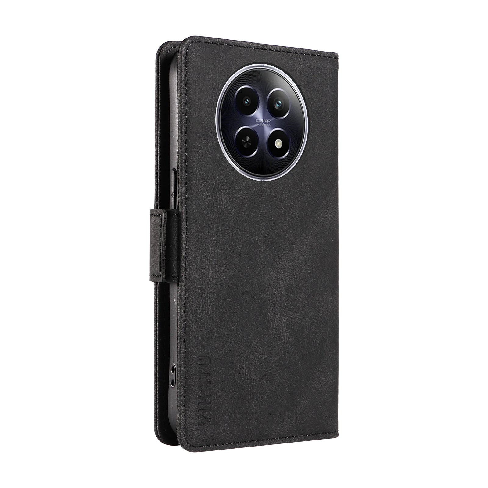 YIKATU YK-005 For Realme 12 Case PU Leather Skin-touch Wallet Flip Phone Cover - Black