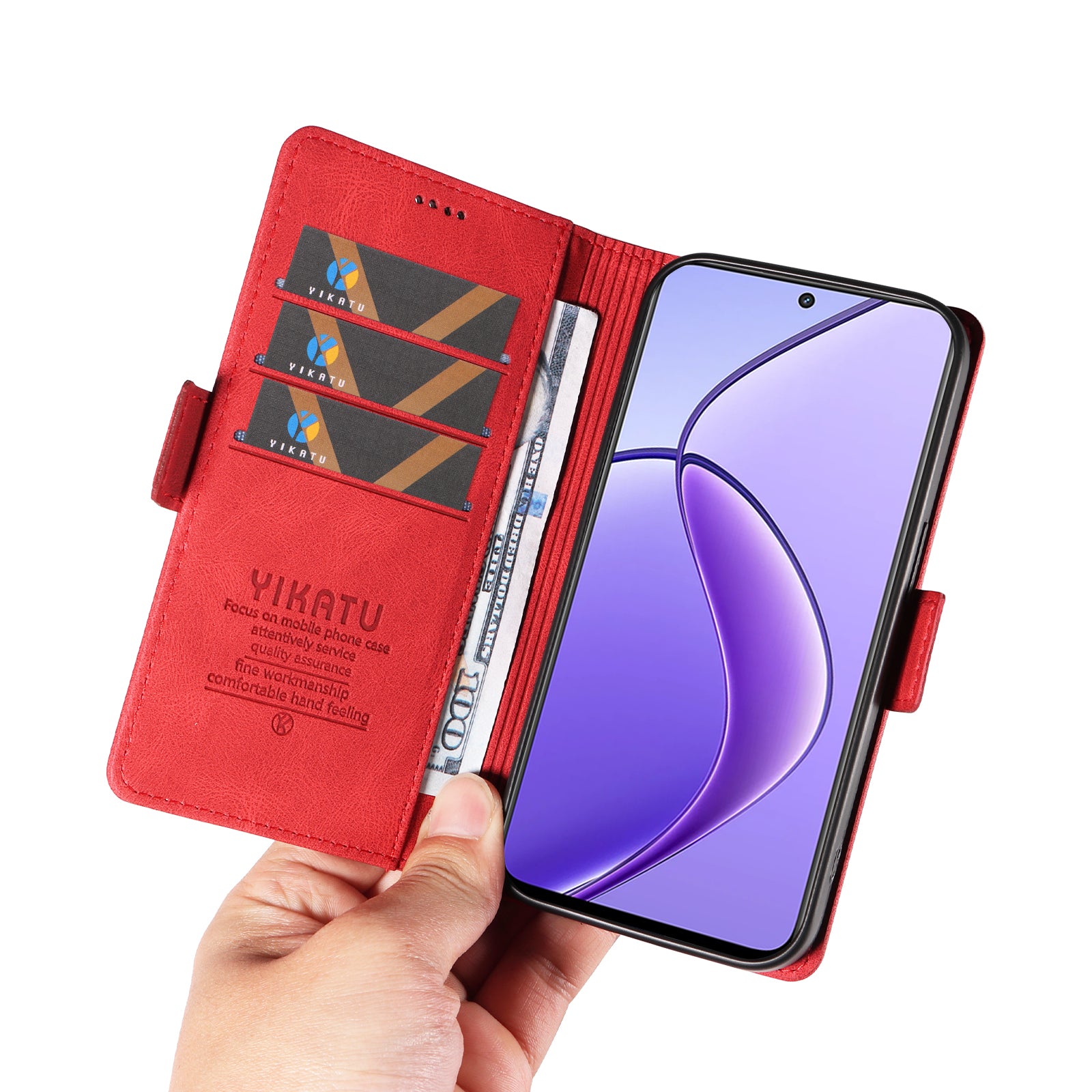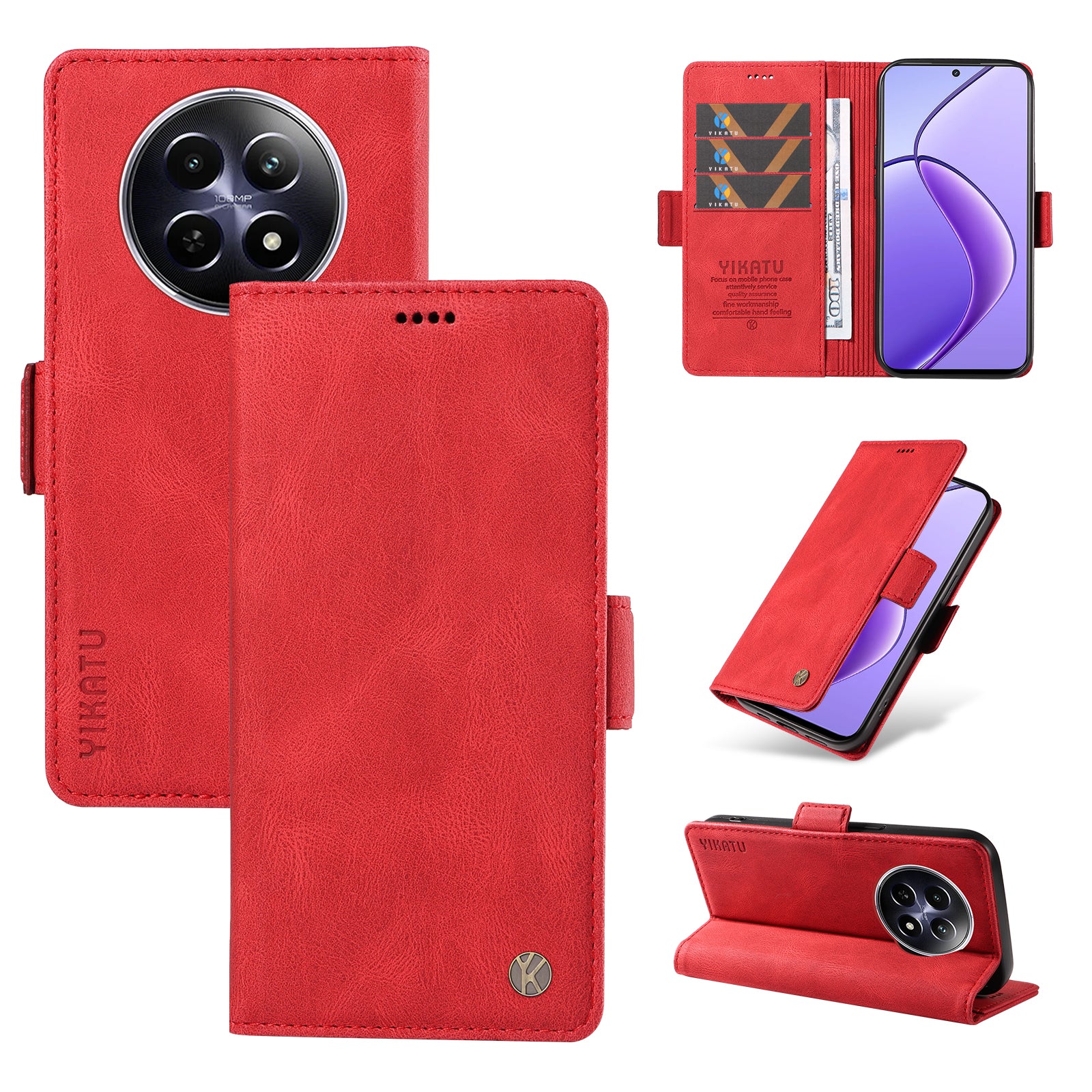 YIKATU YK-005 For Realme 12 Case PU Leather Skin-touch Wallet Flip Phone Cover - Red