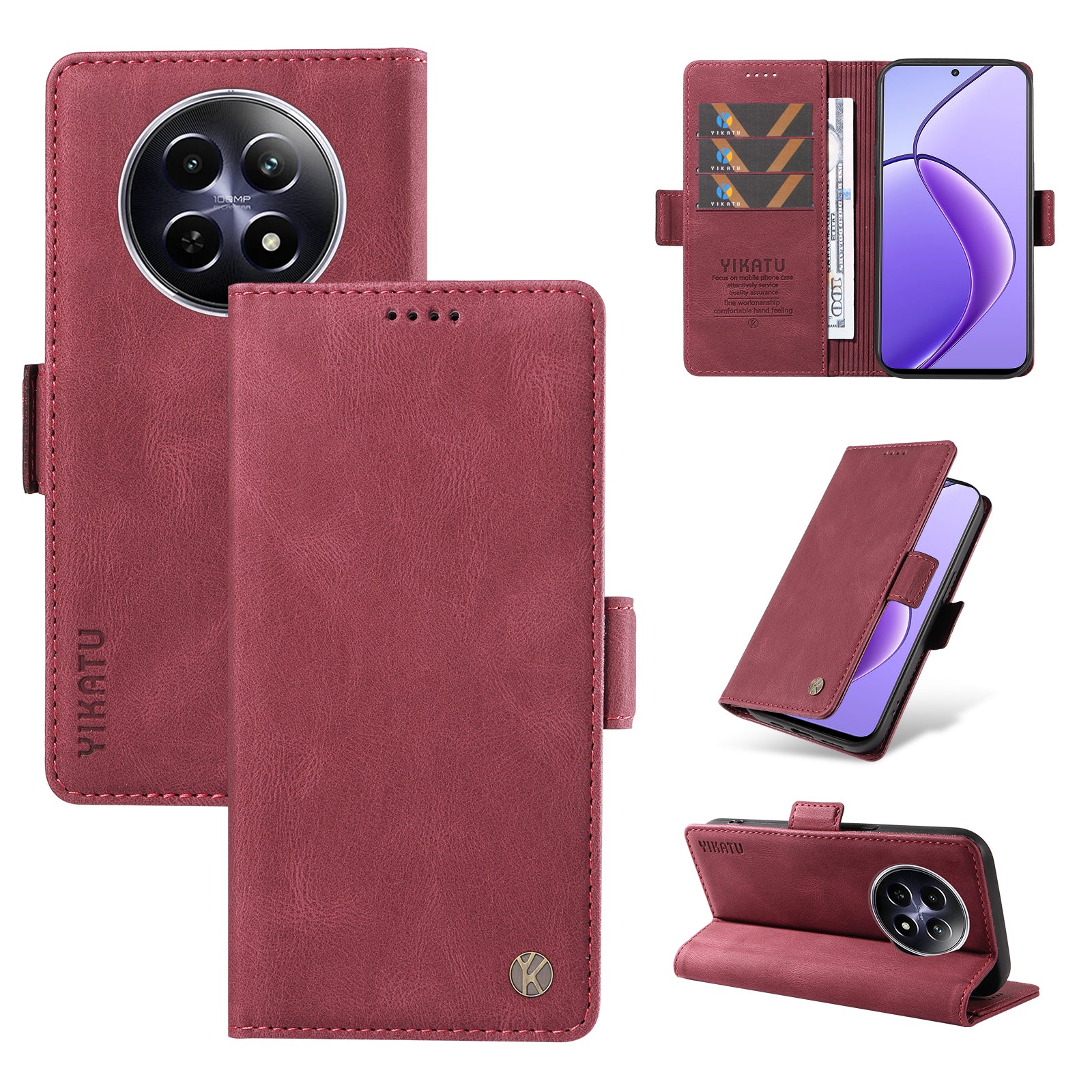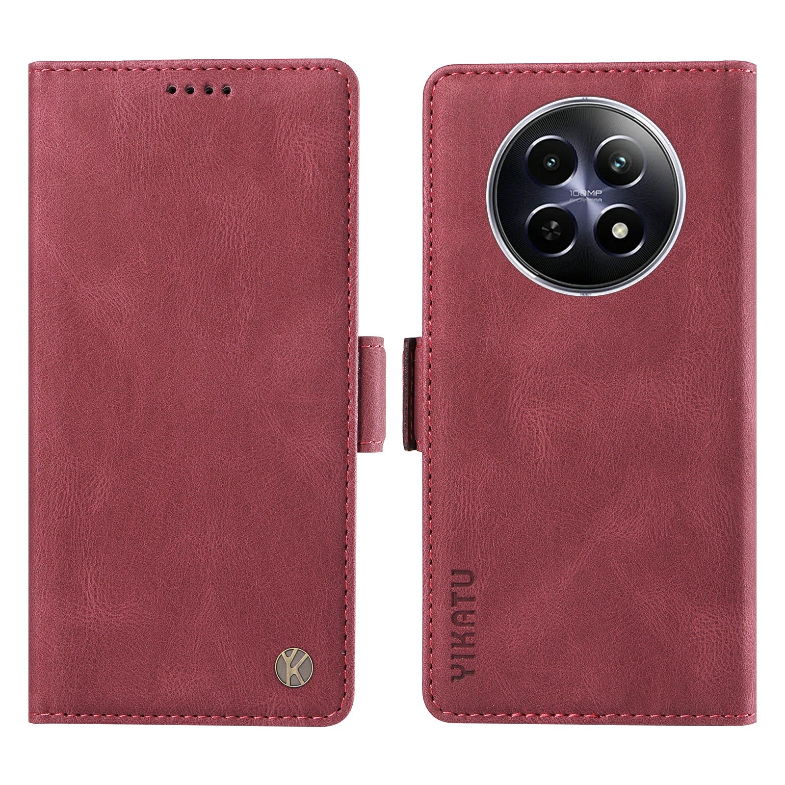 YIKATU YK-005 For Realme 12 Case PU Leather Skin-touch Wallet Flip Phone Cover - Wine Red