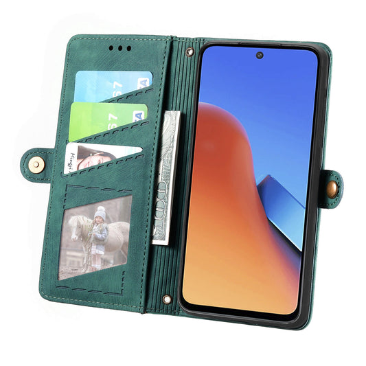 Uniqkart 003 For Xiaomi Redmi Note 12 4G RFID Blocking Phone Wallet Case Leather Stand Cover - Green