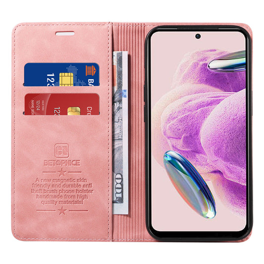 Uniqkart 003 Stand Cover for Xiaomi Redmi Note 12S 4G RFID Blocking Phone Wallet Leather Case - Pink