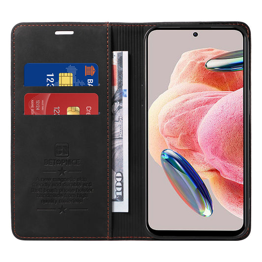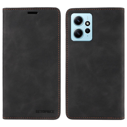 Uniqkart 003 For Xiaomi Redmi Note 12 4G RFID Blocking Phone Wallet Case Leather Stand Cover - Black