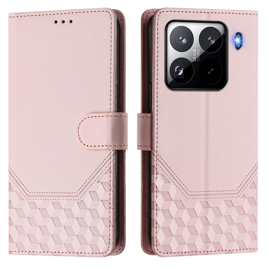 For Xiaomi 15 Pro Case Imprinted Honeycomb RFID Blocking Leather Phone Cover with Strap - Mint Green