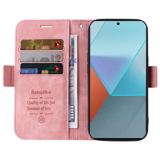 BETOPNICE 001 for Xiaomi Redmi Note 13 Pro+ 5G Phone Case Imprinted Lines Pattern Wallet Cover - Red