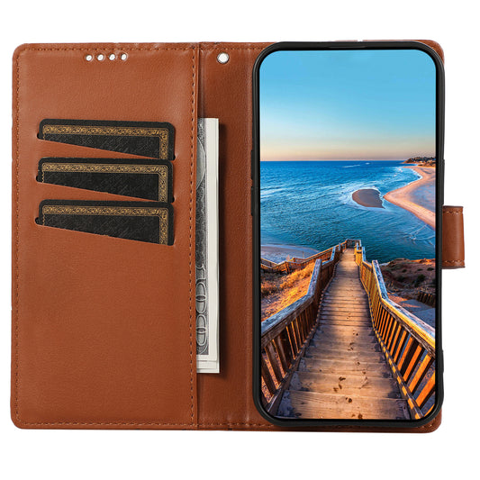 DIERFENG DF-03 Phone Wallet Cover for Realme 12 / 12x 5G Shell Card Slot Lines Imprinted Case - Pink