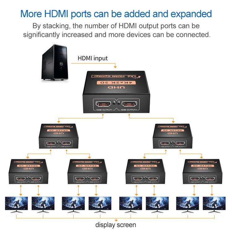 1 In 2 Out 4K Splitter UHD 3D HDMI Video Converter HD 1X2 1080P Switcher for PC DVD PS3 Xbox