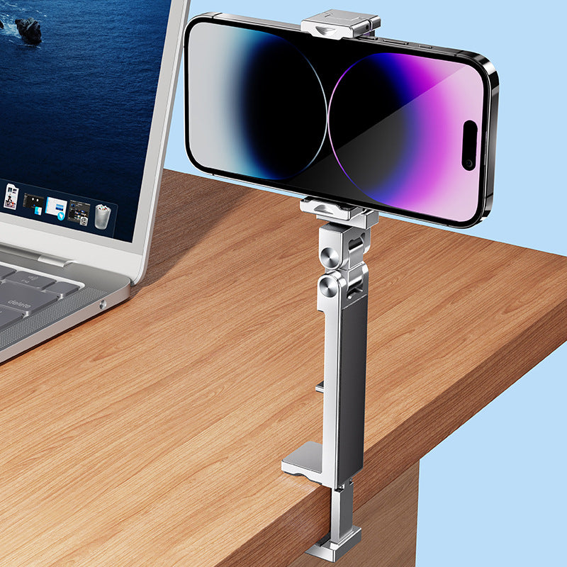 360° Rotating Metal Phone Holder Adjustable Phone Mount Stand for Travel Office Kitchen - Silver