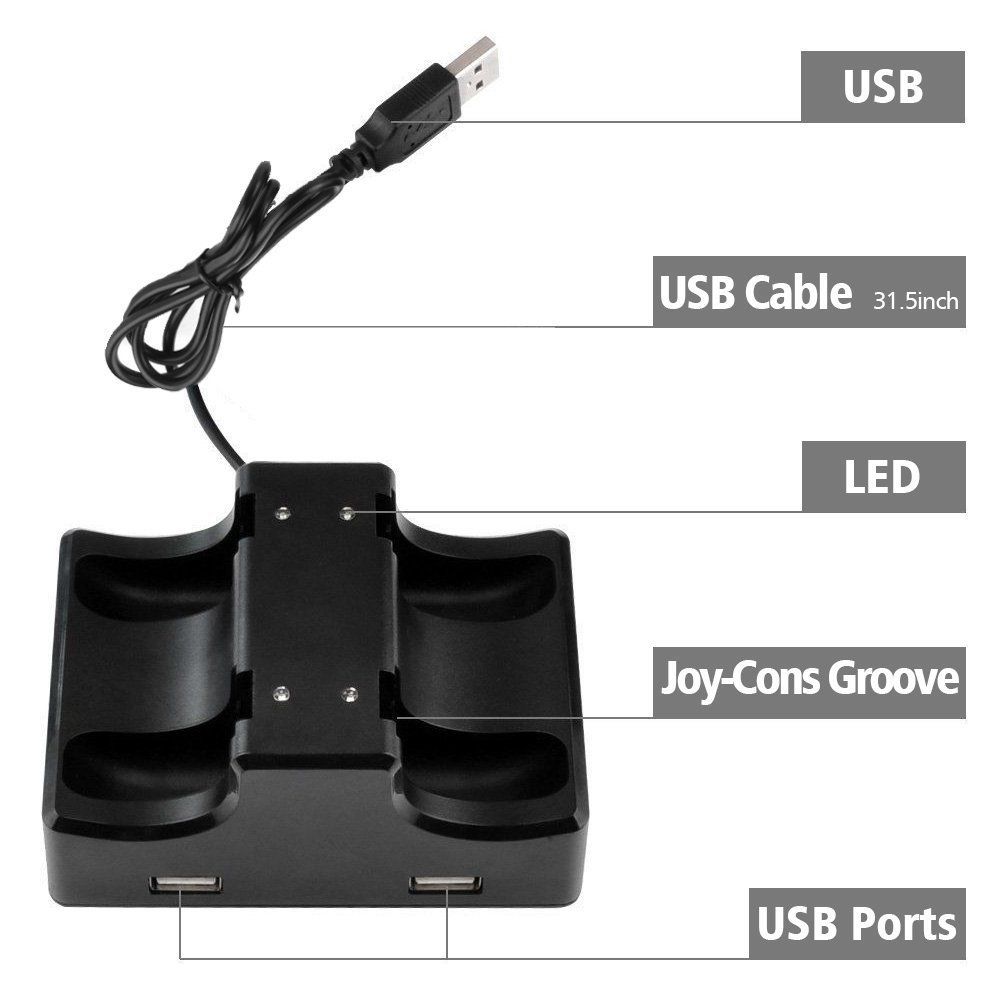4 in 1 Charge Dock: Charge up to 4 Joy-Con Controllers simultaneously.