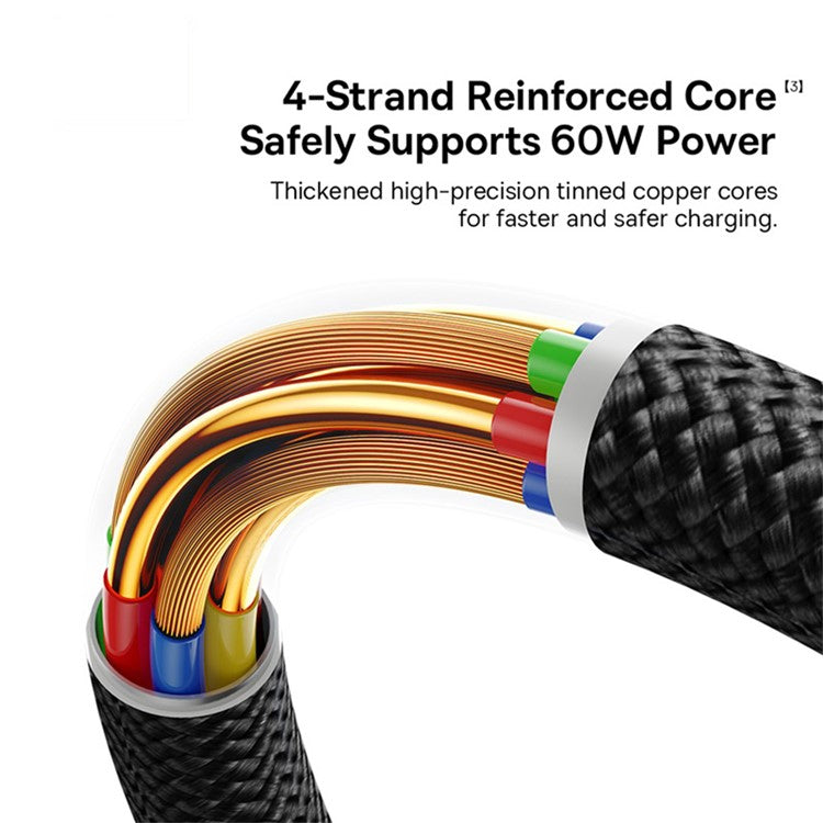 BASEUS Dura Series USB-A to USB-C PD 60W Fast Charging Cable Data Cord, Length: 1m - Red+Black