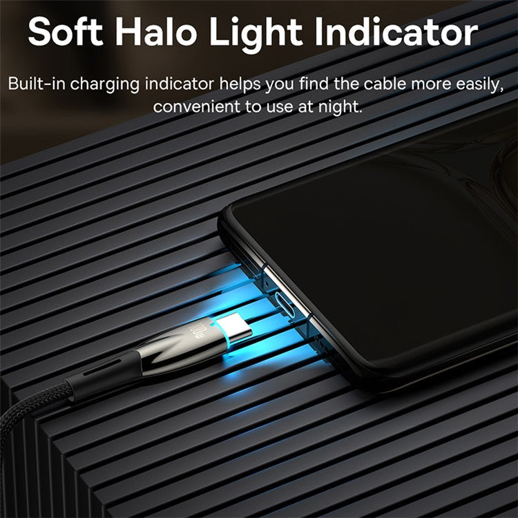 BASEUS Glimmer Series USB to Type-C Charging Cable 2m 100W Nylon Braided Fast Charger Cable - Black