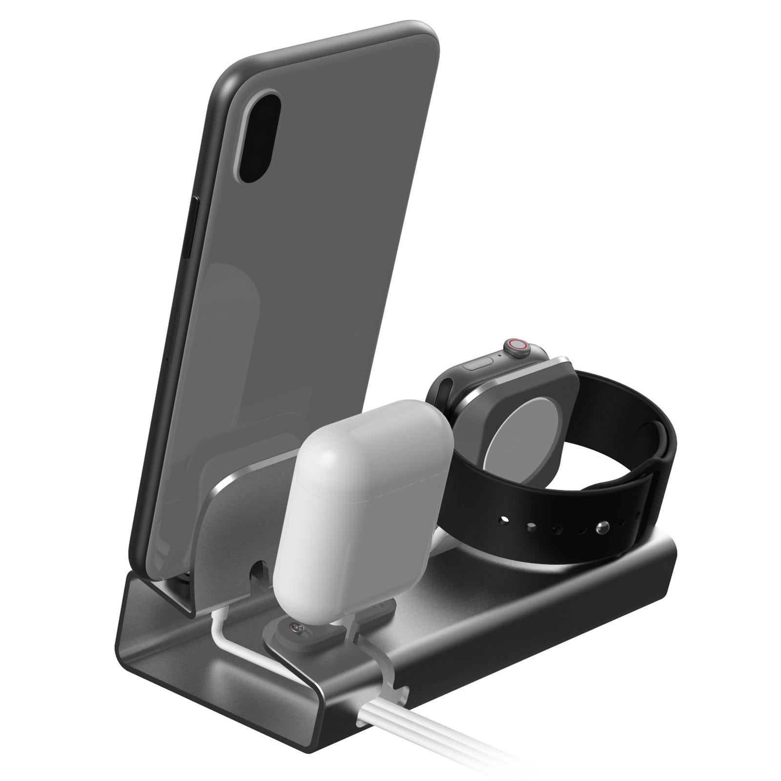 Chargering Station Dock One-Piece Molding 3in1 Shelf Holder for Home silver
