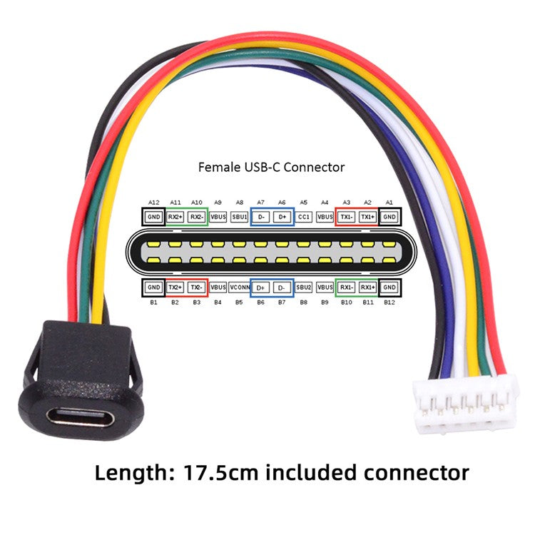 CN-025-6P 5Pcs / Set DIY OEM Type C Female Socket to 6 Pin Header Cable Pitch 2.0mm Latch Mount Type DC 5V / 20V PD Power