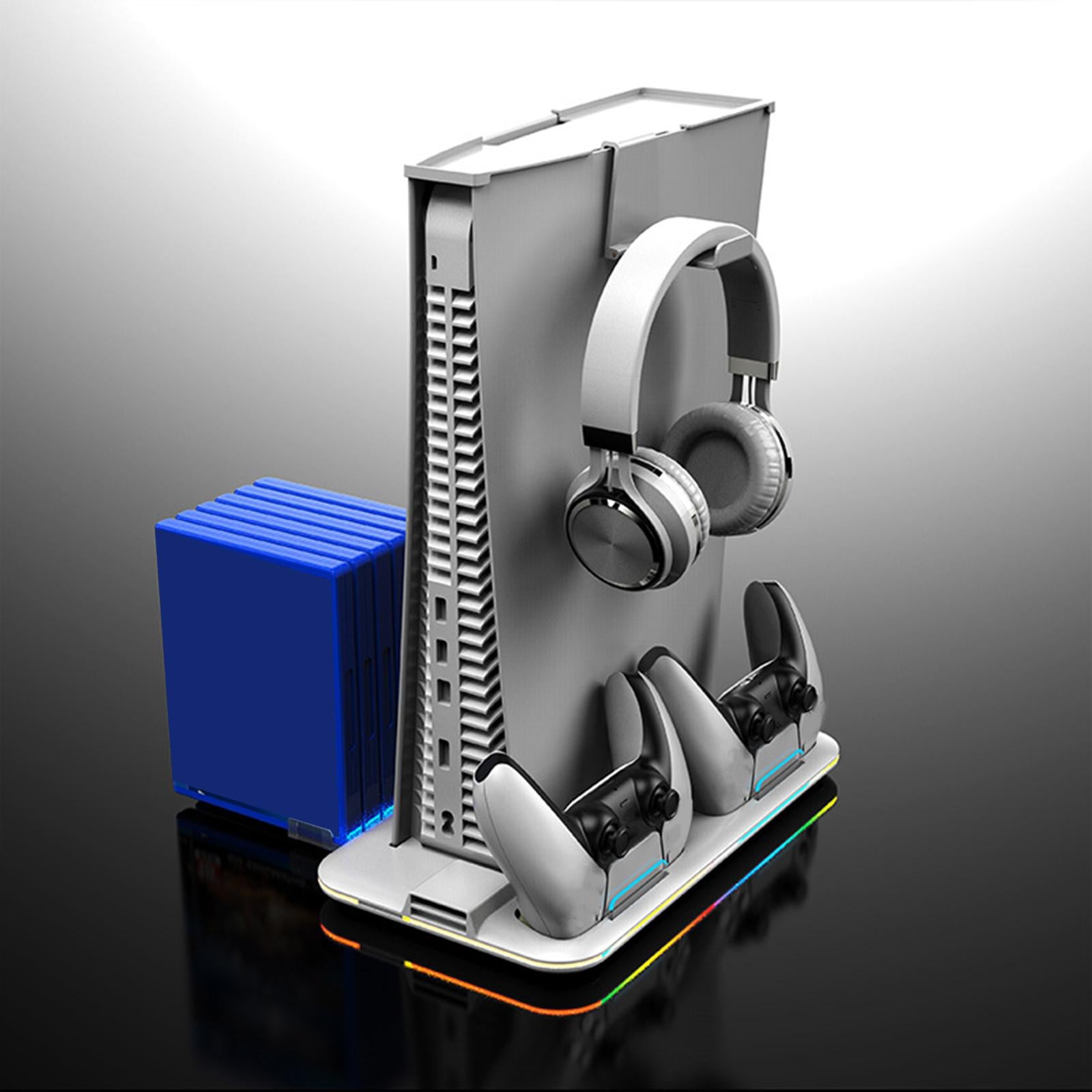【Integrated Stand】: The cooling stand is designed for PS5 game console accessories, with a headphone hook and a detachable game card storage (6 slot), which can keep your game console, controllers, headset and game accessories organized. (ONLY stand, NOT including game console and accessories).