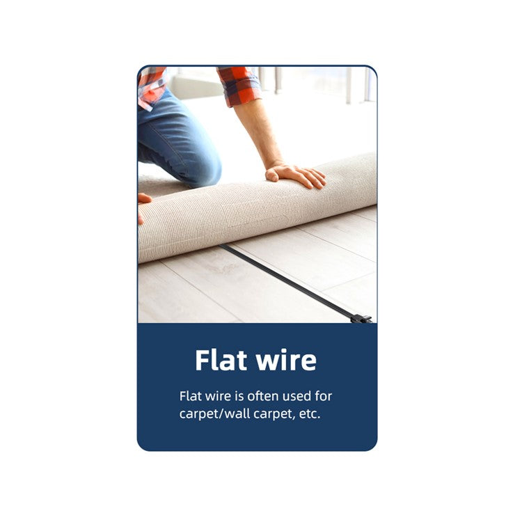 Two choices of round/flat wire. The round shape is often used in daily office, Internet, home, and campus; the flat wire is often used in wiring decoration and hidden in the carpet and wall seams