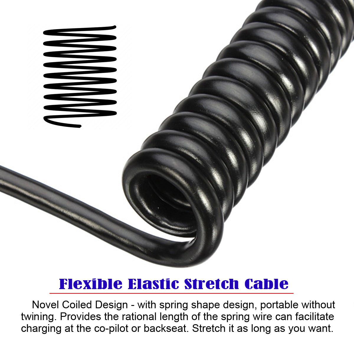 - Coiled cable, professional reversed coil, more substantial, prevents damage to the coil caused by overstretching, and provides the perfect length for connecting a device without having a tangled cable mess