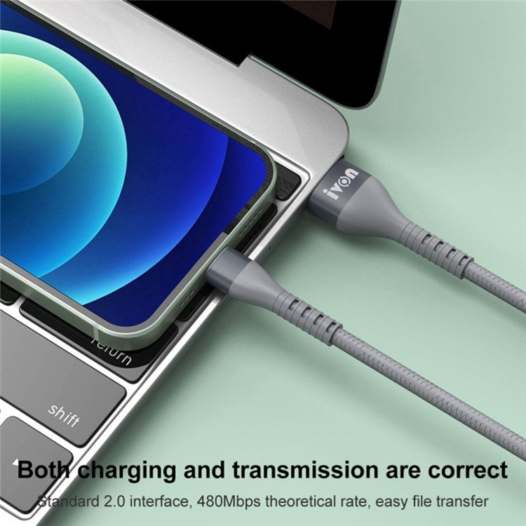 IVON CA92 1.5m USB to Micro USB Data Cord 2.4A Flexible Rubber Cable - Black
