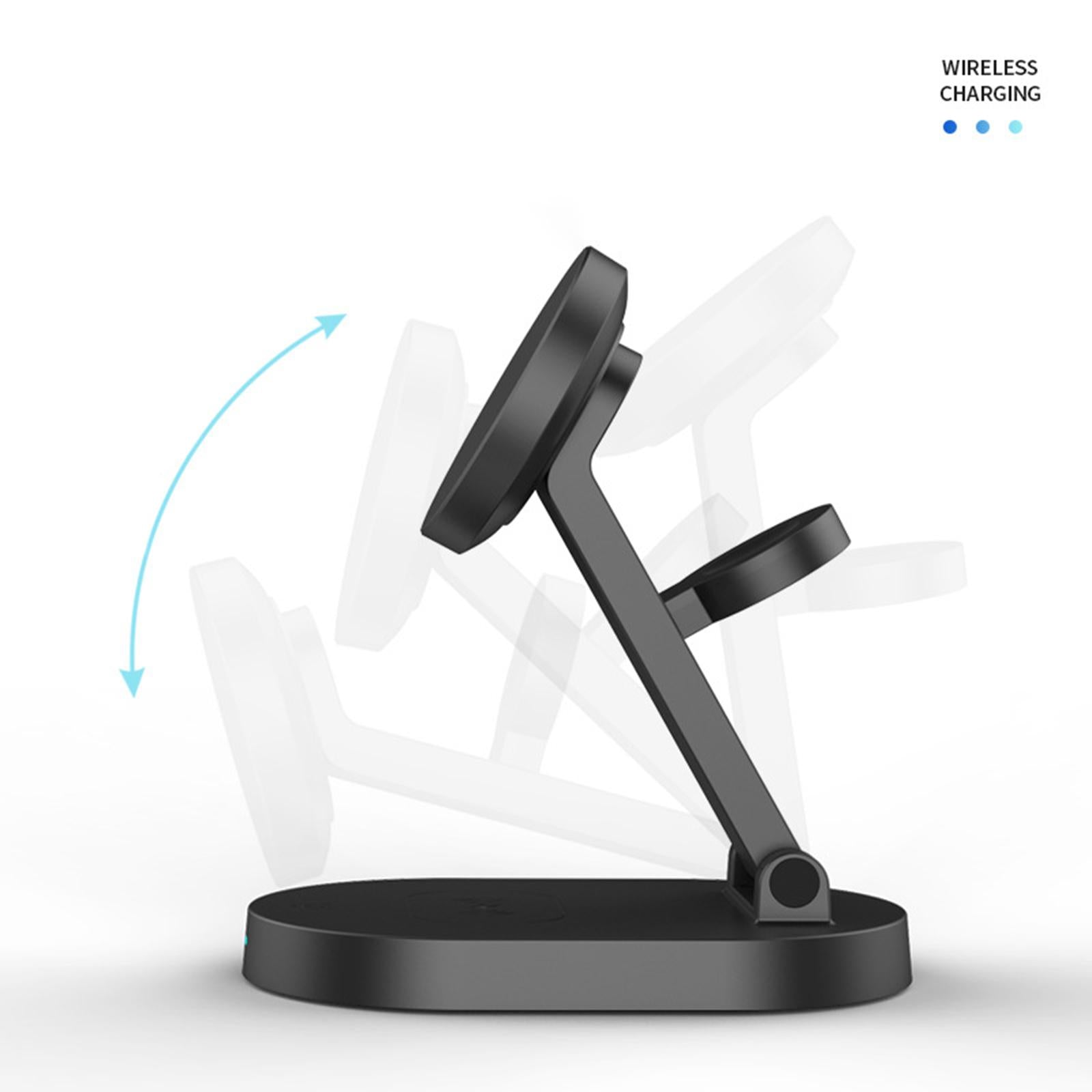 3 in 1 wireless charger can charge 3 devices at the same time by connecting one cable.