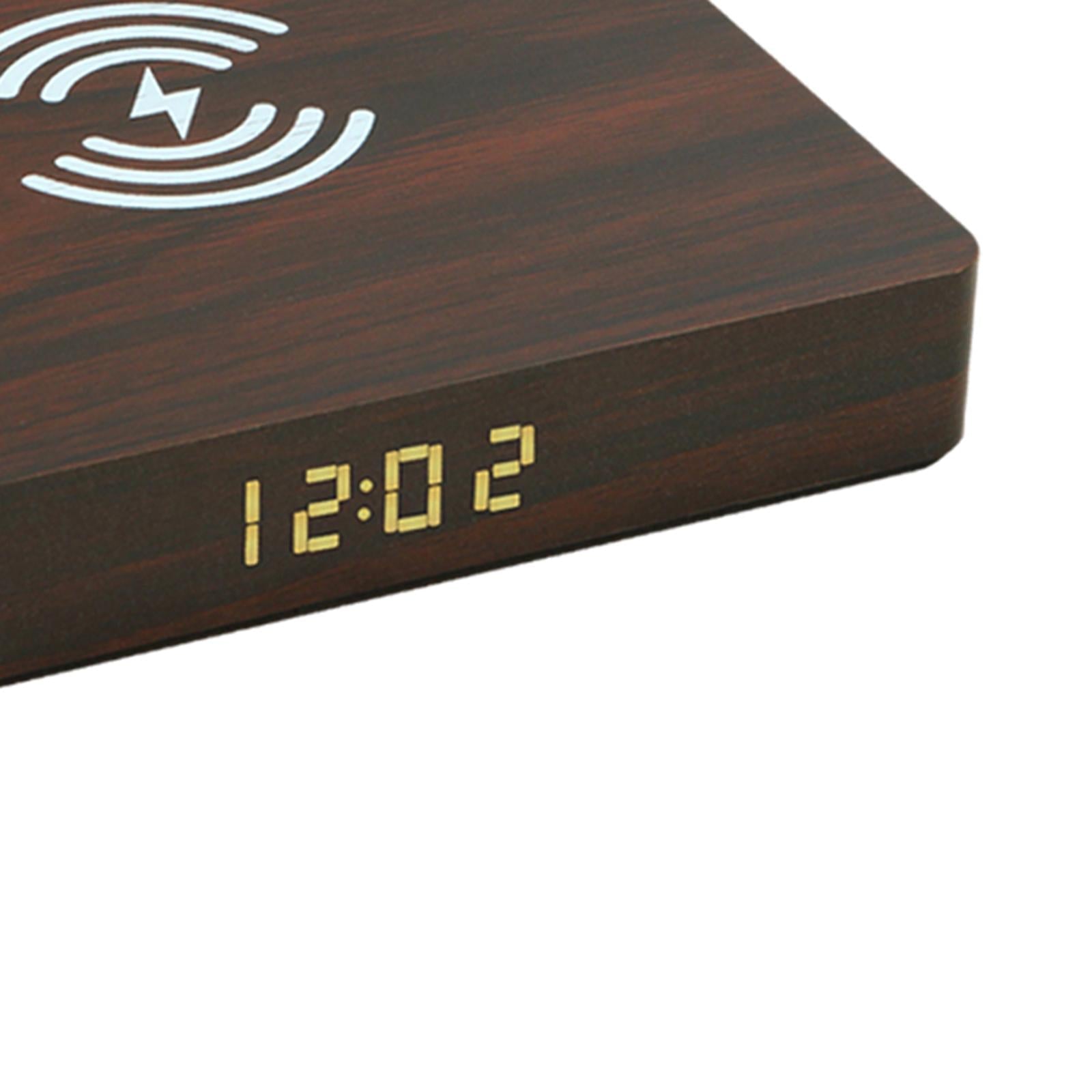 Qi Wireless Charger Station with Alarm Clock for Bedroom Travel Dark Brown