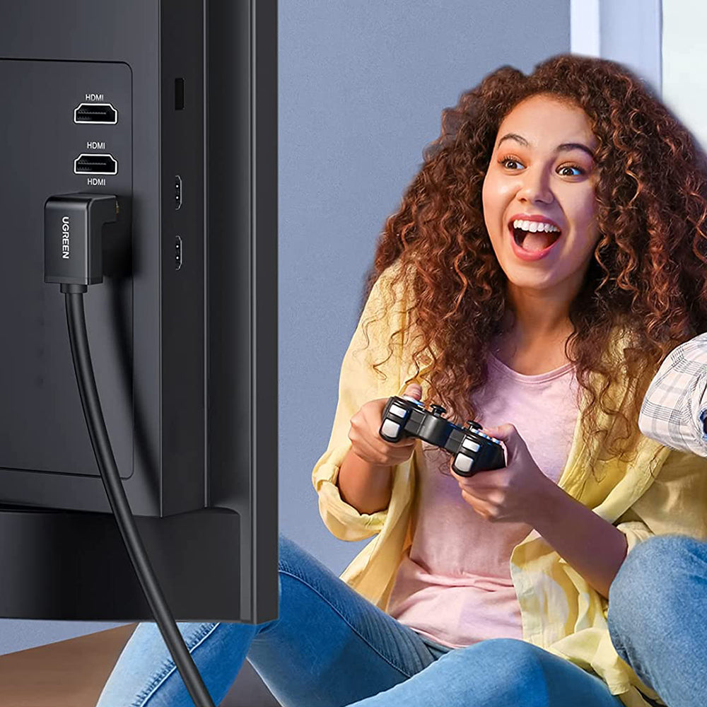 - 270 Degree HDMI Cable: Don't need to bend the HDMI cable, and solves the problems of inconvenient cabling caused by space in TV and other equipments