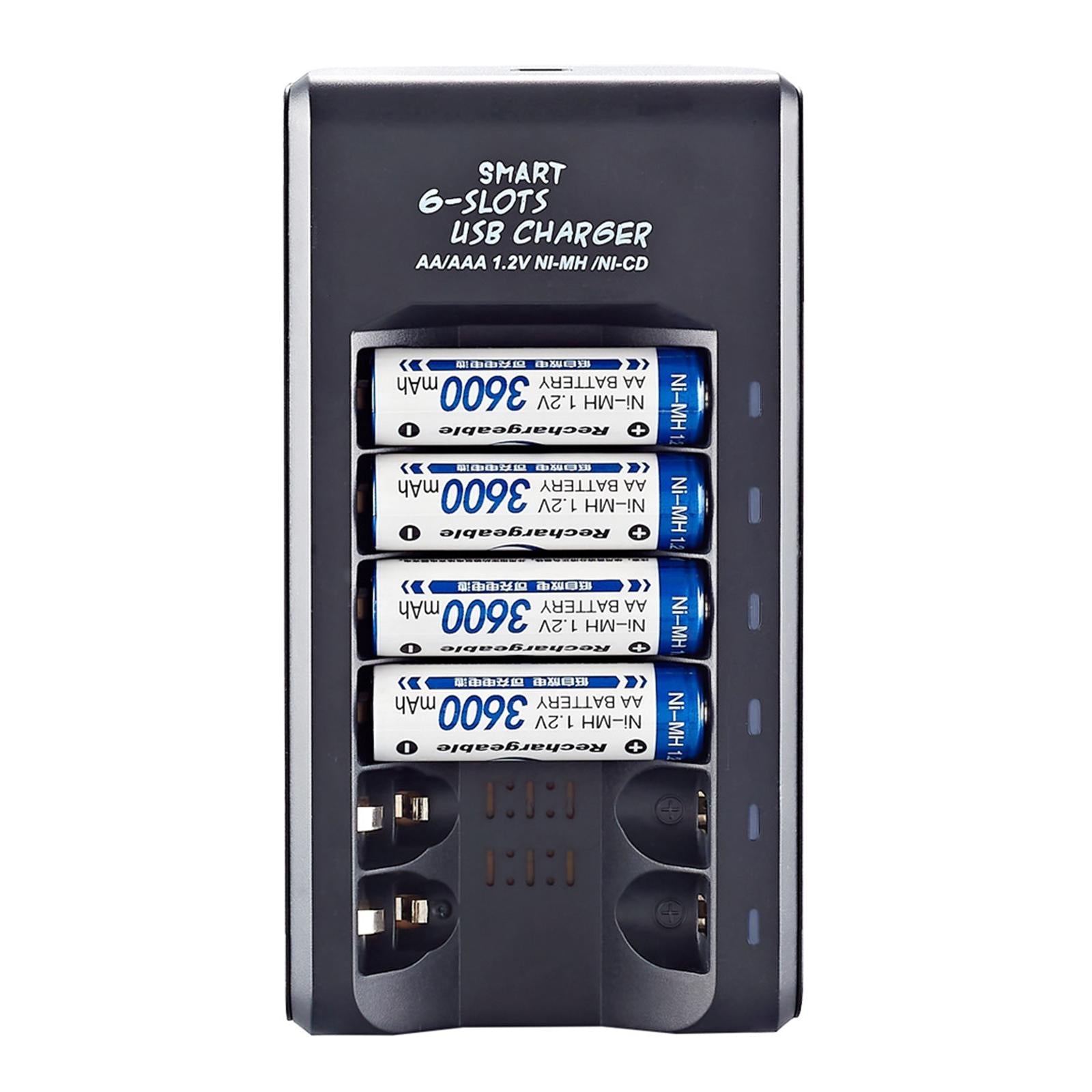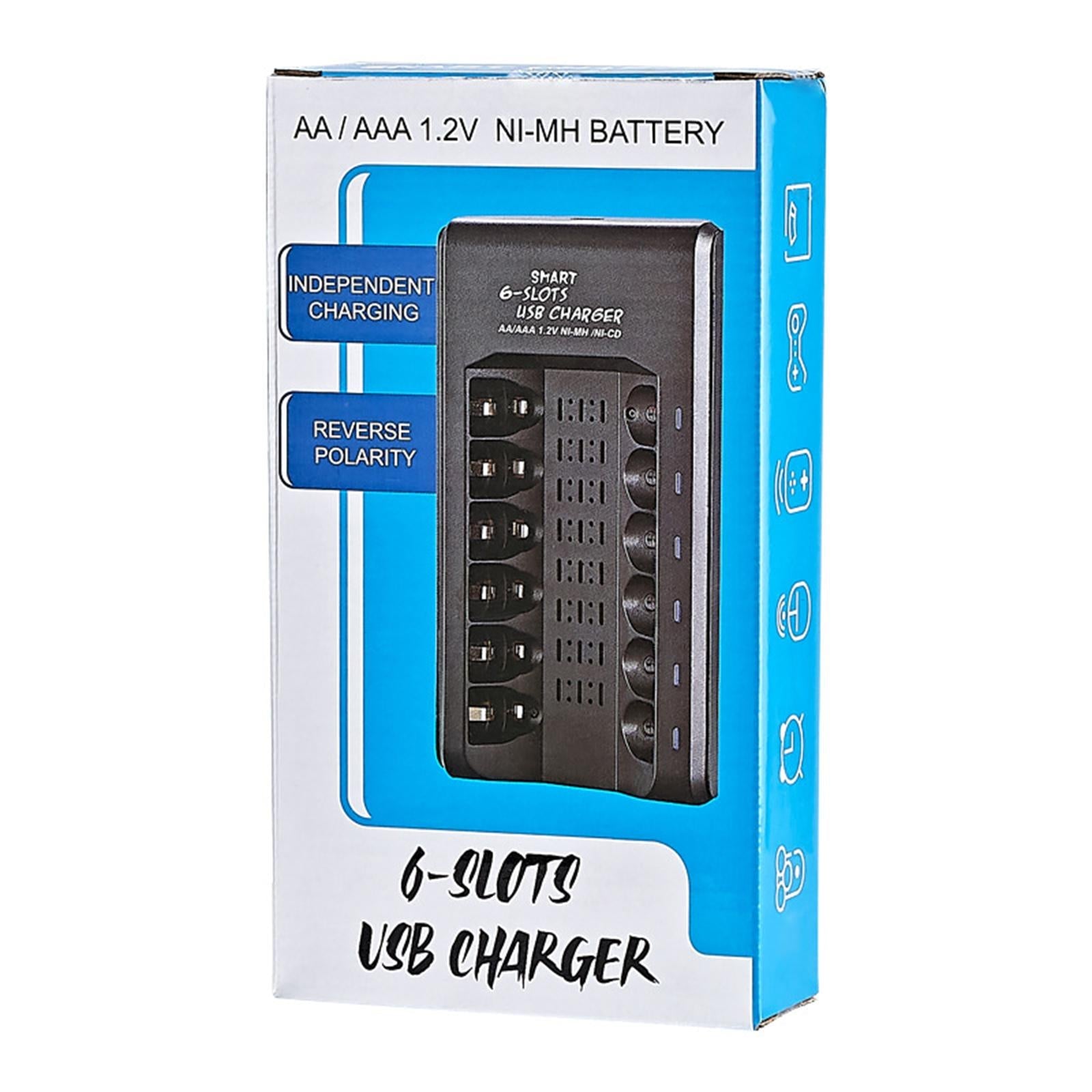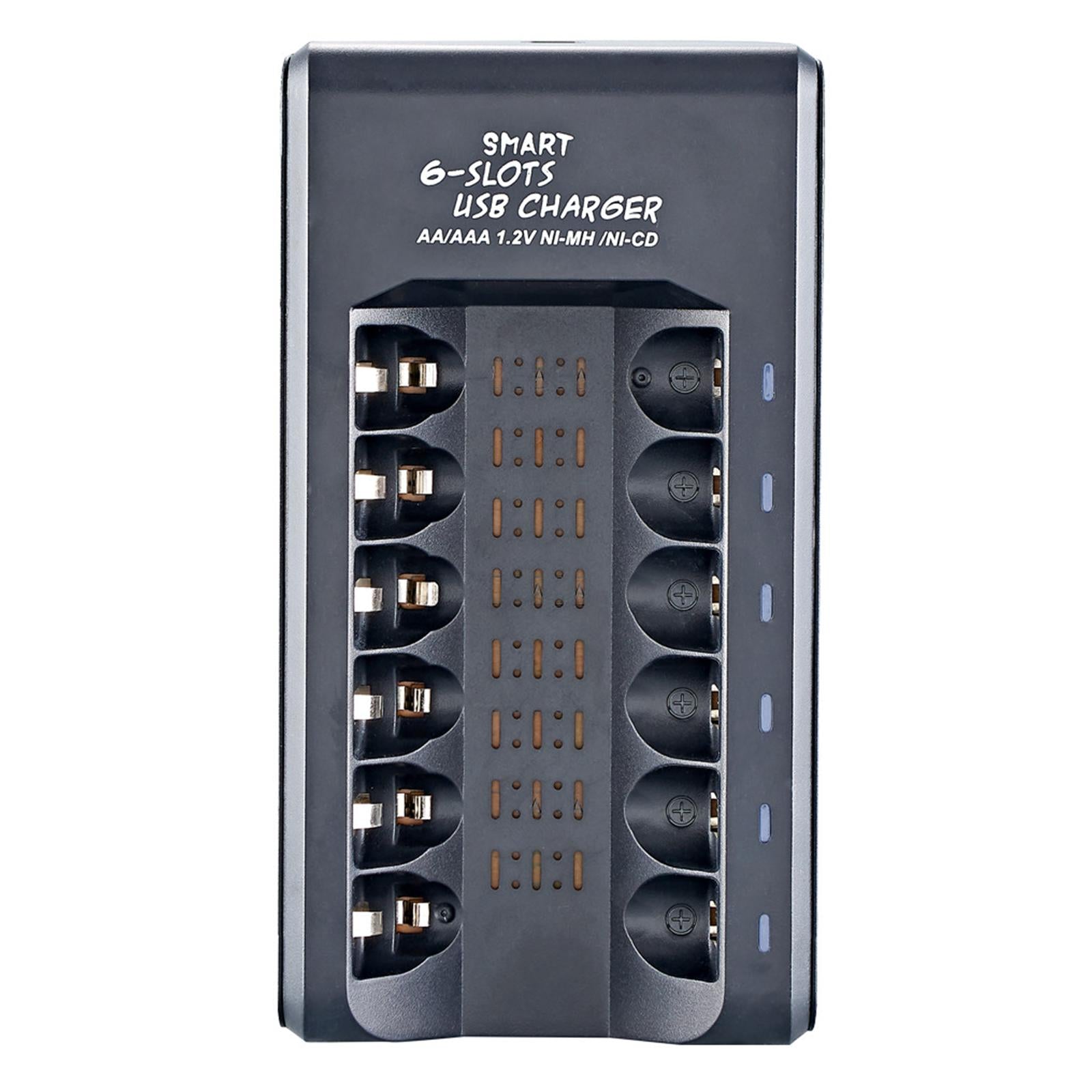 6 Slots: independent and separate charging, portable charging method, DC5V USB power supply, can more accurately control the charging process, fully charge the light off, and prevent battery overcharging.