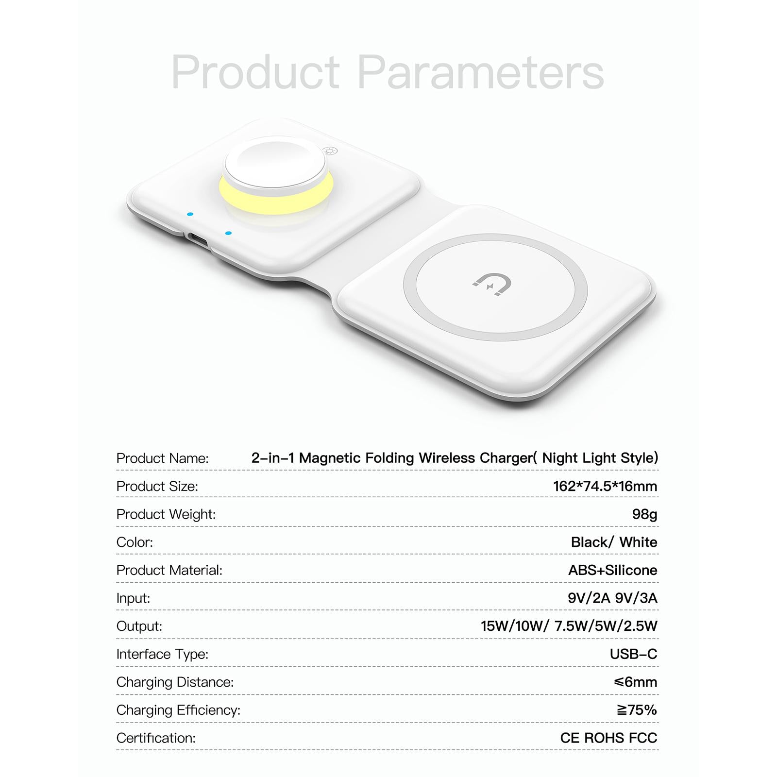 2 in 1 Magnetic Wireless Charger: Charge for mobile phones /for Airpods/for iWatch at the same time, solving the trouble of charging multiple devices at the same time.