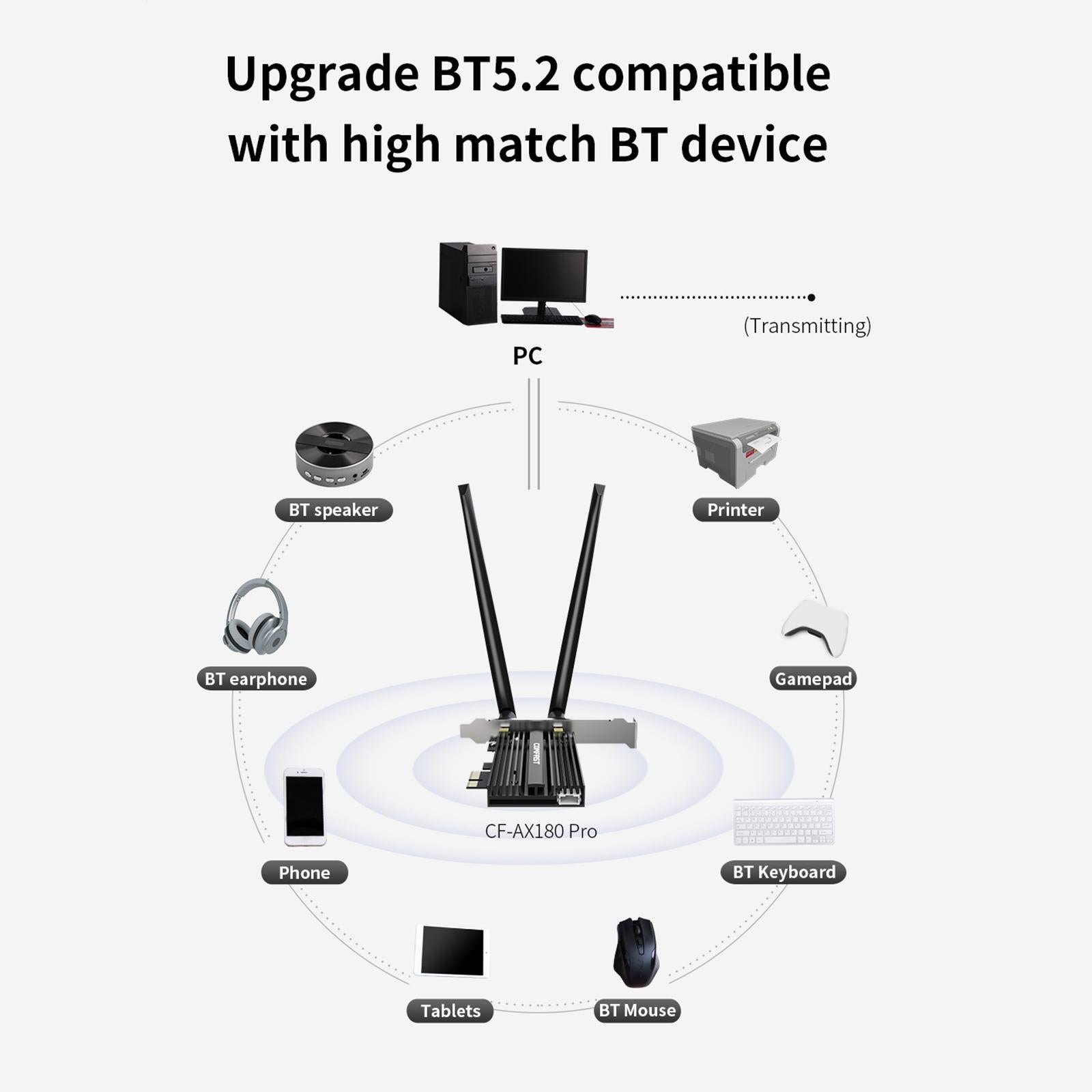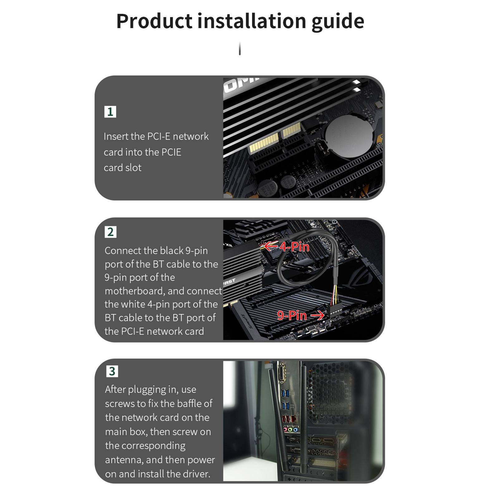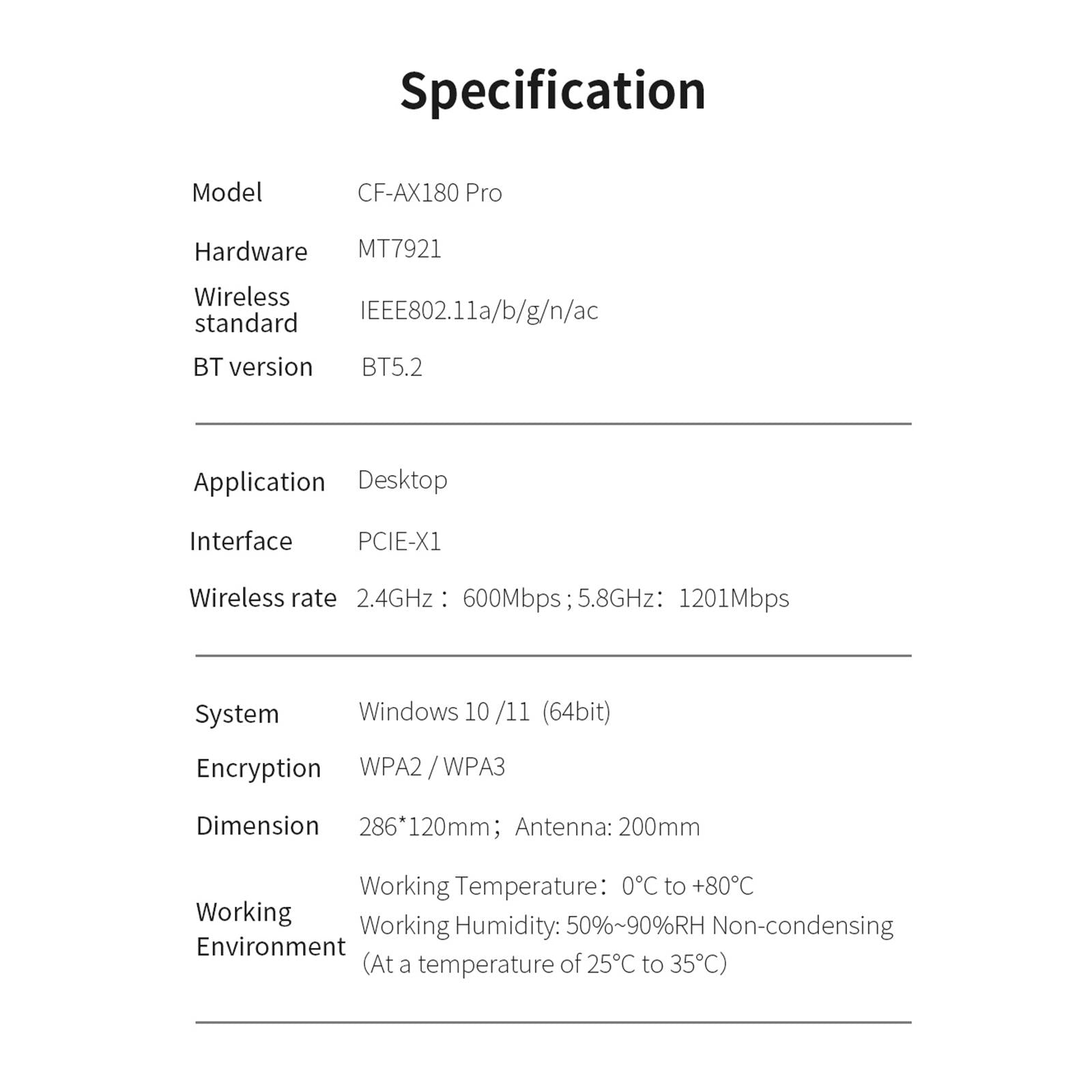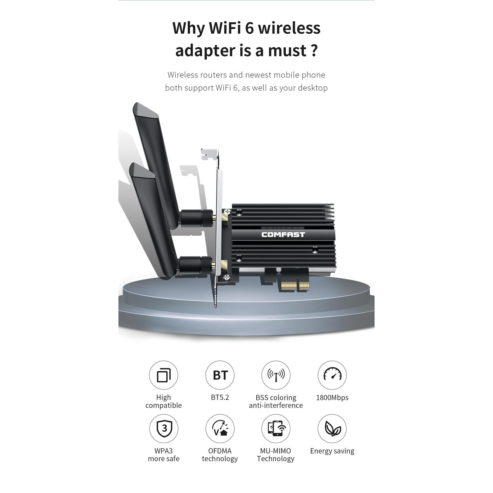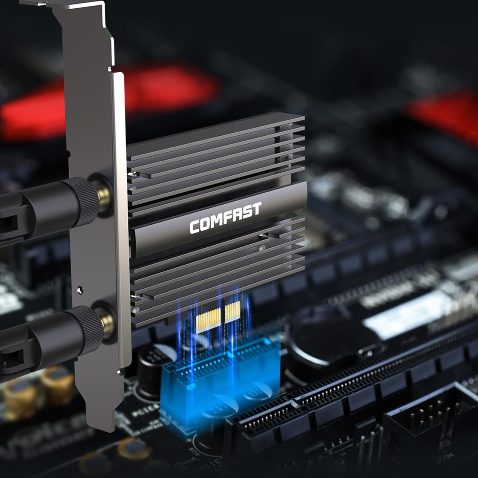The network card with Wi-Fi 6 PCI-E technology, compatible with Windows 10 64bit for desktop PC.