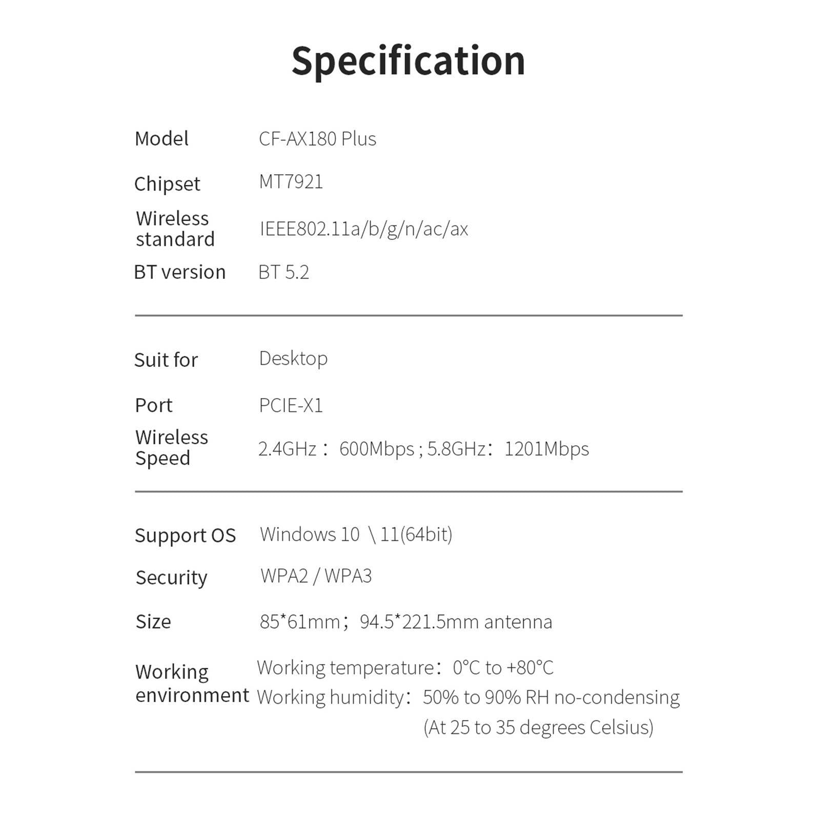 The network card with Wi-Fi 6 PCI-E technology, compatible with Windows 10 64bit only for desktop PC.