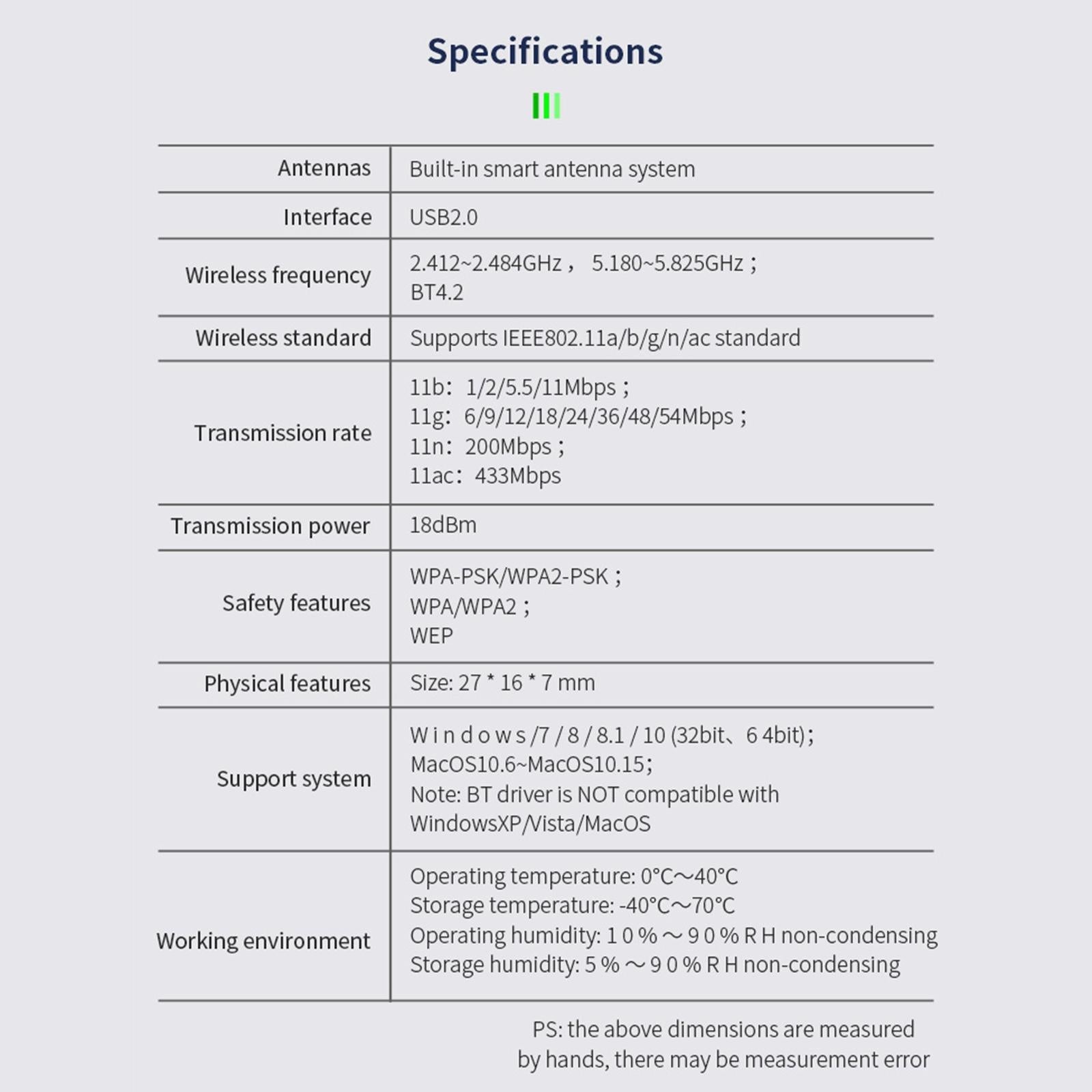 Transmission Rate: Max. 650Mbps