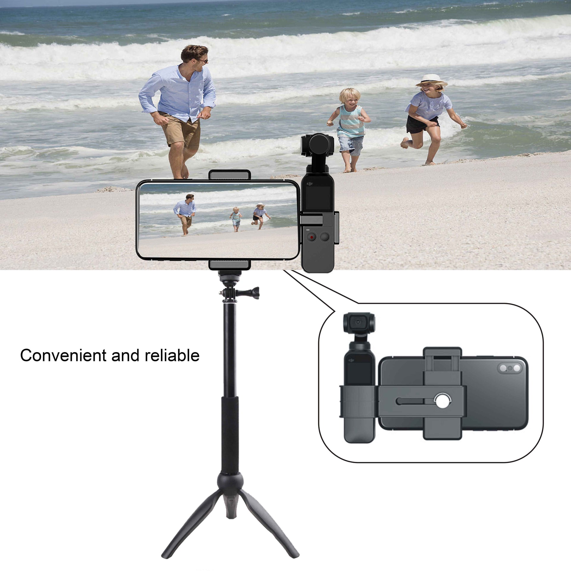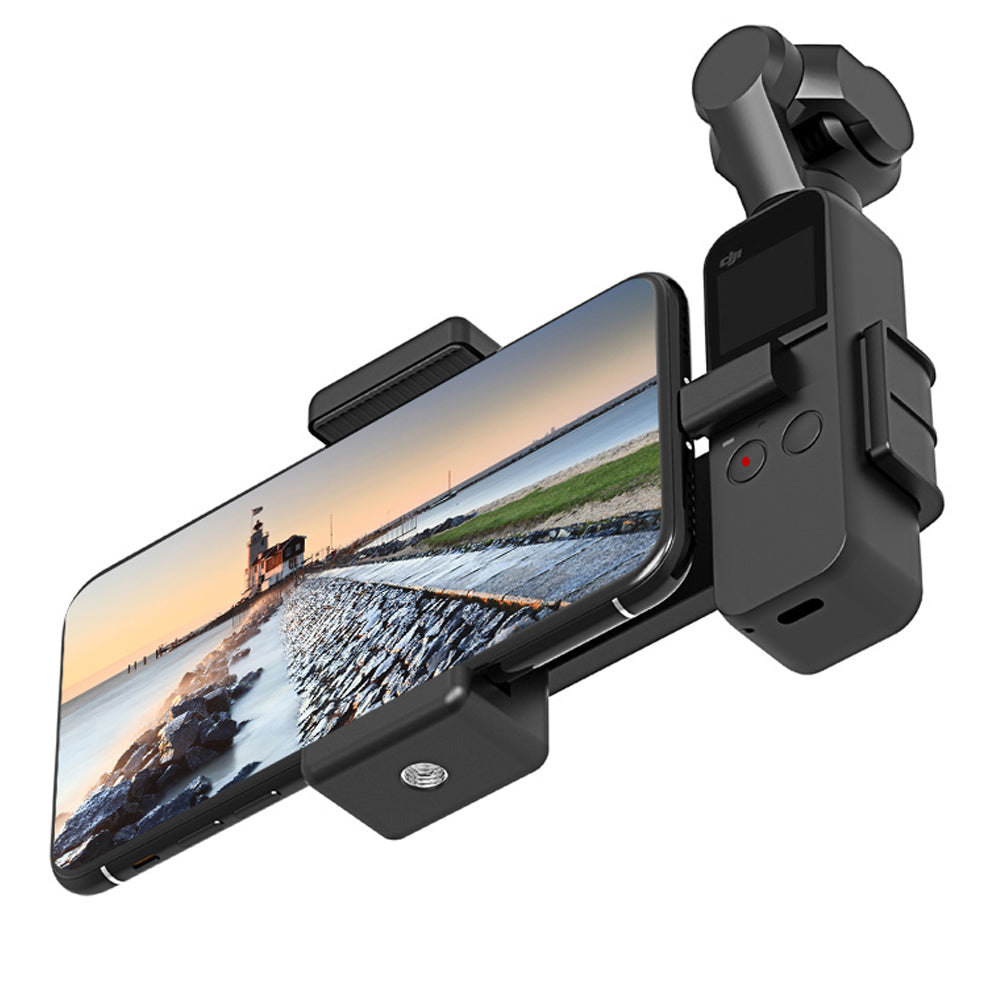 - Portable and durable phone clamp holder mount grip, securely locks your phone and for Osmo Pocket, helps you enjoy photography and get a more professional filming experience