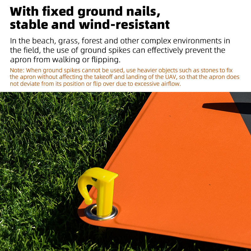 - 1. When ground spikes cannot be used, use heavier objects such as stones to fix the apron without affecting the takeoff and landing of the drone, so that the apron will not deviate from its position or flip over due to excessive airflow.