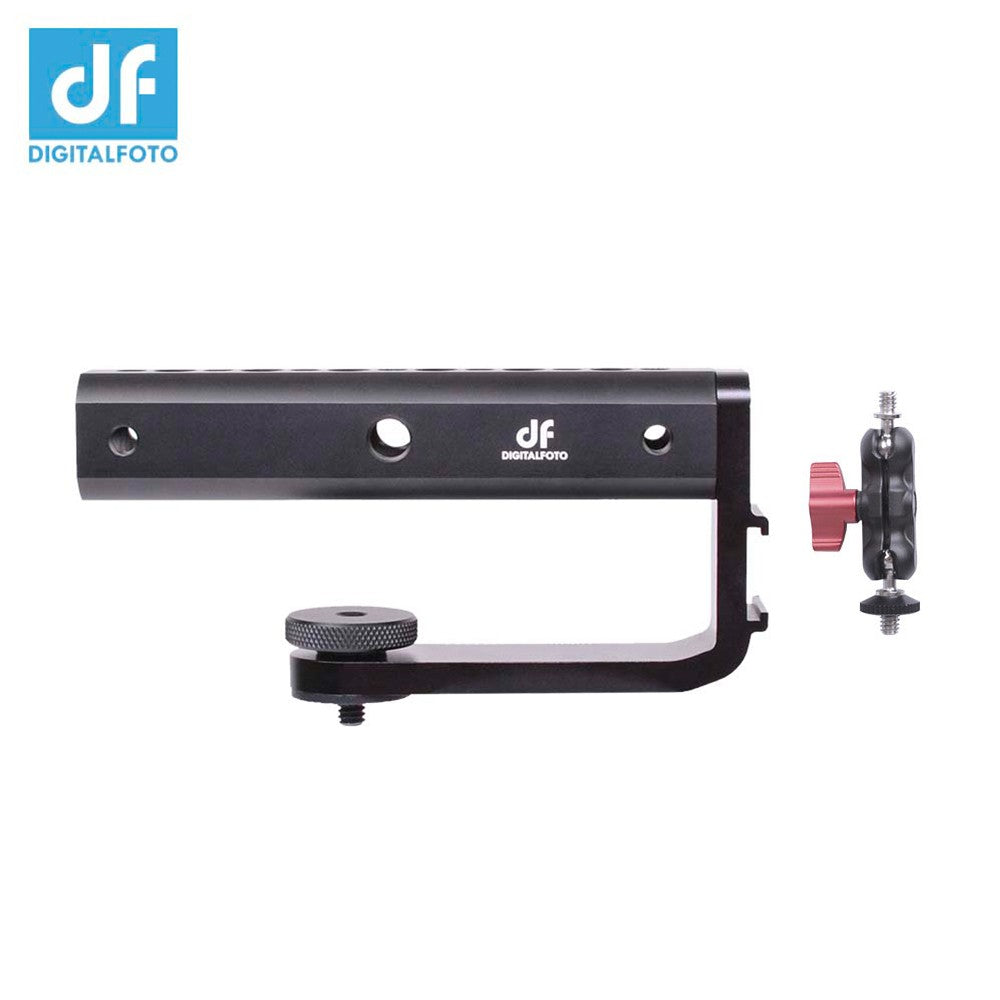 Designed with a hot shoe mount and many 1/4 & 3/8 inch screw holes on the bracket, supplied with a magic arm grip, for connection of other photographic accessories, such as monitors, video light, microphones and so on