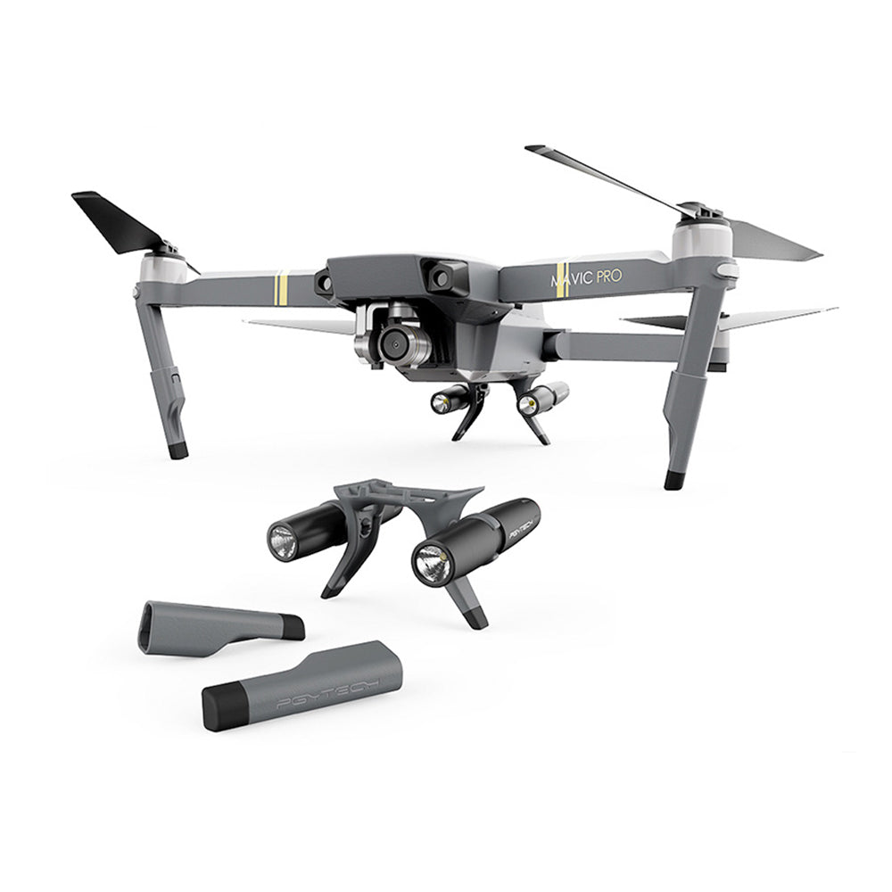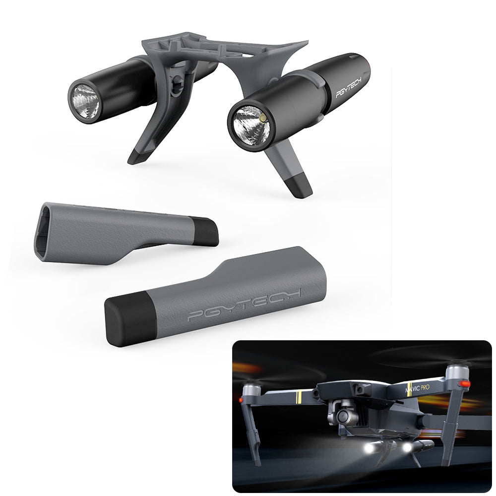 With four flashing patterns, three brightness settings, two XPE LEDs, and a sleek metallic finish, this headlight set is perfect for increasing your Mavic Pro's visibility