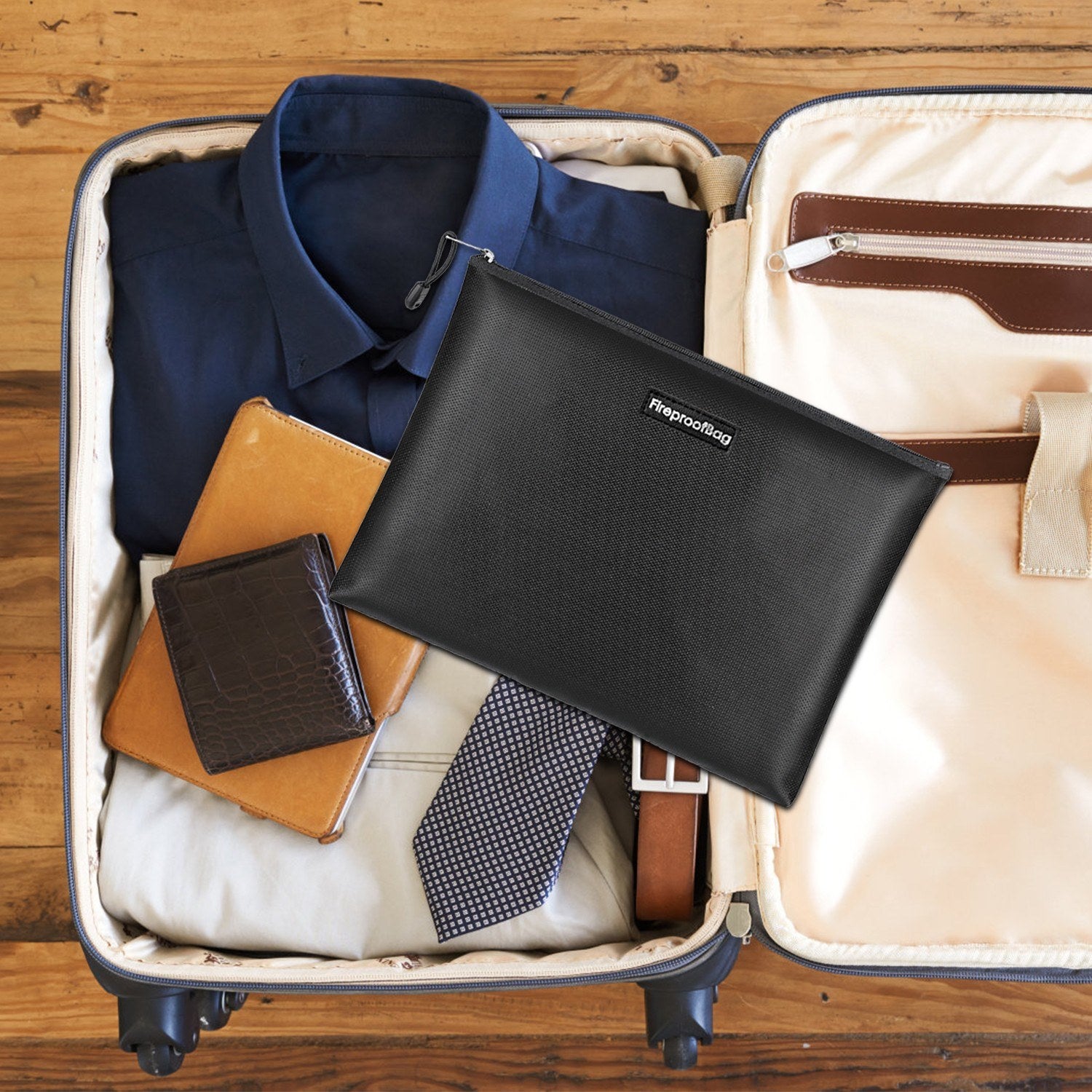 Black fireproof bag, soft and comfortable touch, this document bag can be folded easily. Lightweight and portable, easy to carry