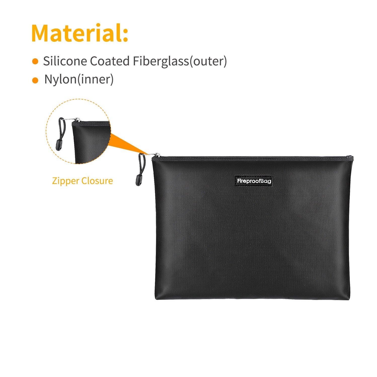 Made of high quality non-itchy silicone coated fiberglass outside, and nylon material inside, high temperature resistance can up to 1000 Celsius degree(about 1832?). Document bag is not easy to get wet, effectively protect your important items, have a good water resistant performance
