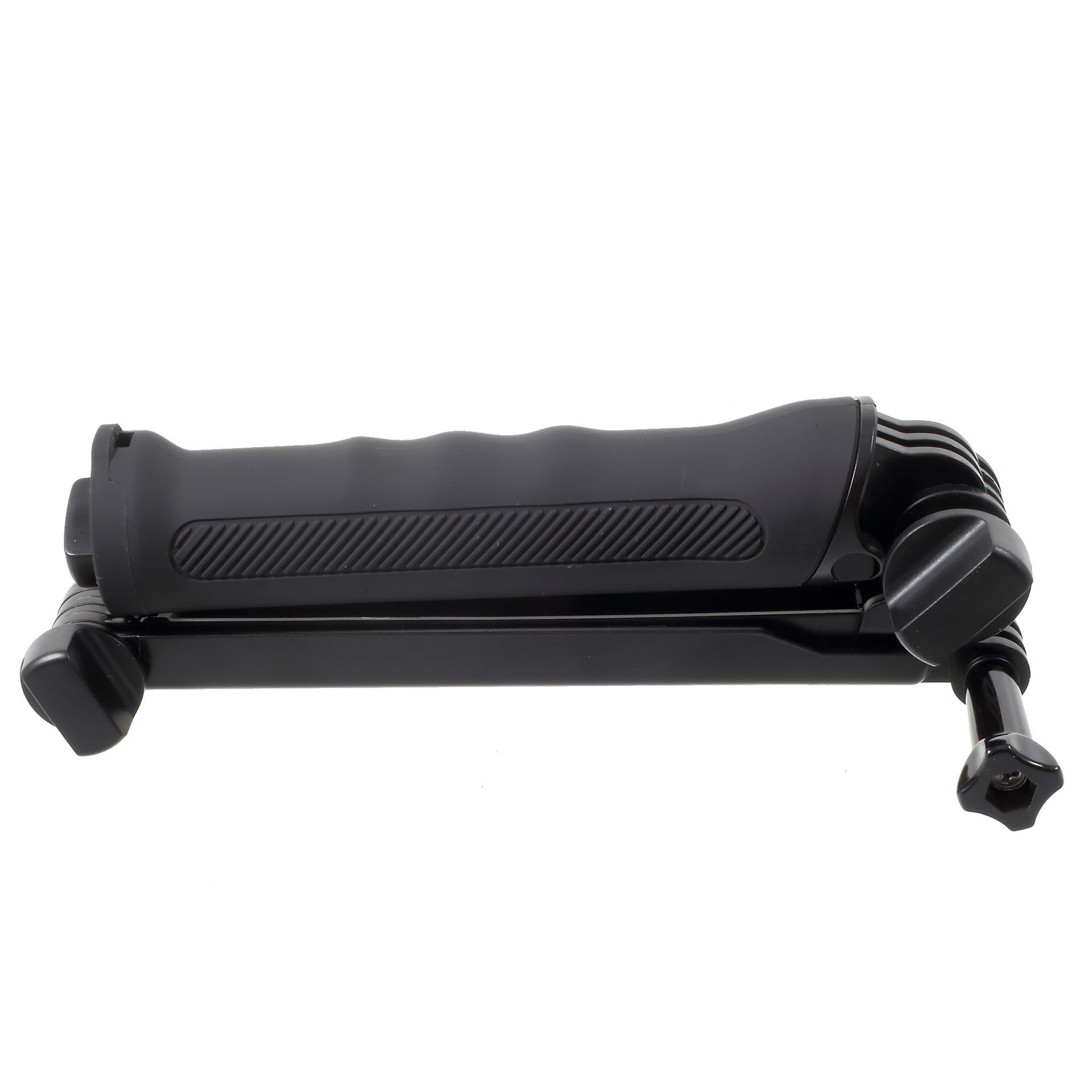 It has three-section pole design to be used for three main ways: as a foldable selfie monopod arm, hand grip and tripod for GoPro, Xiaomyi, SJCAM and other action cameras.
