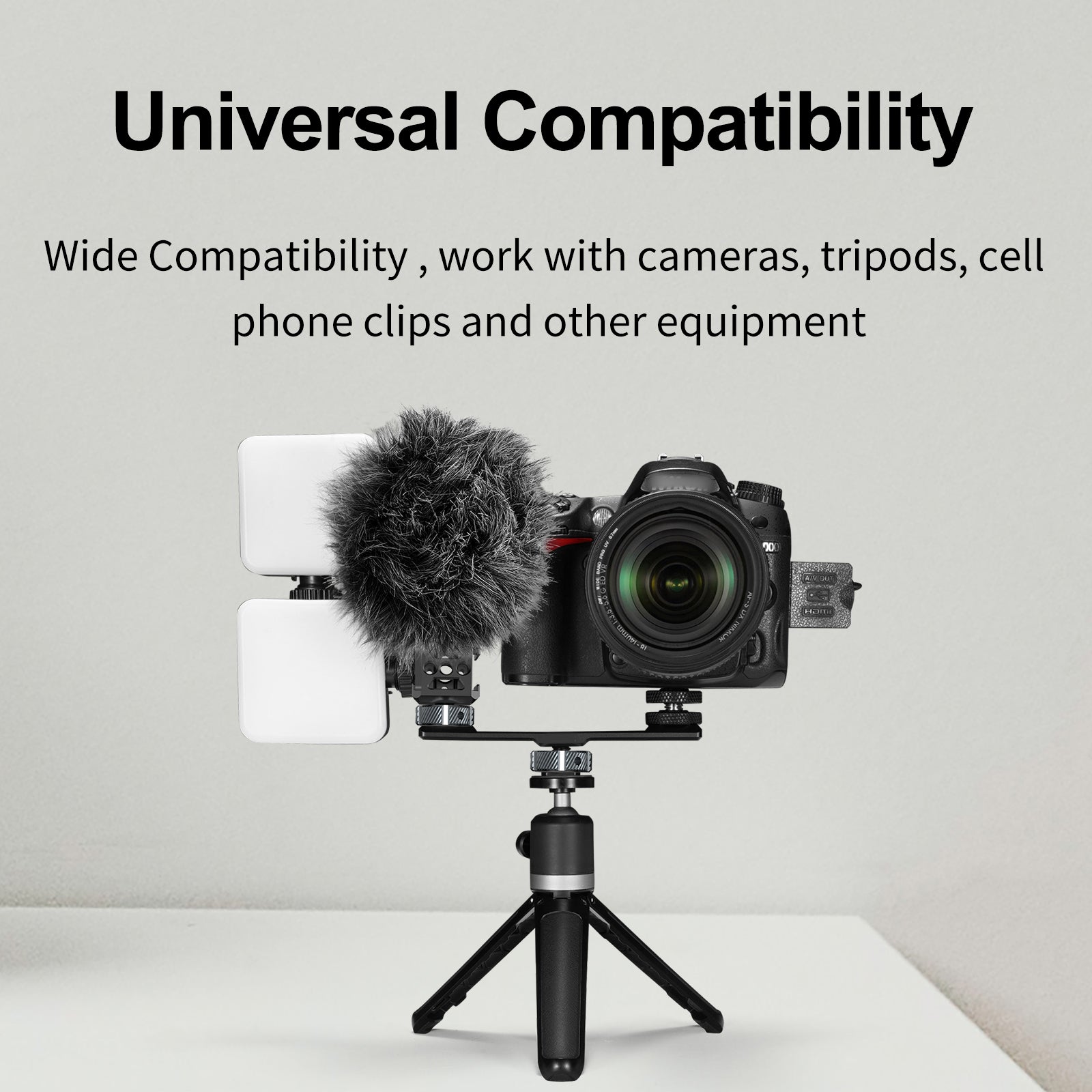 The bottom adopts a cold shoe mouth and a 1/4" screw hole, compatible with cameras, desktop tripods, etc.