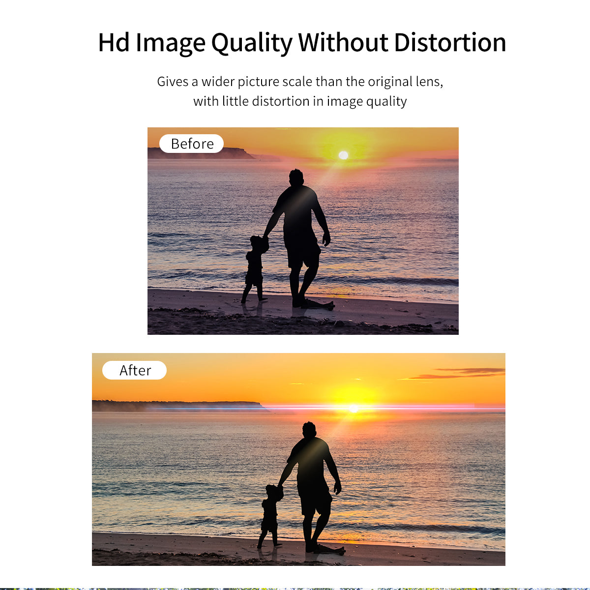 HD Image Quality without Distortion: Gives a wider picture scale than the original lens, with little distortion in image quality