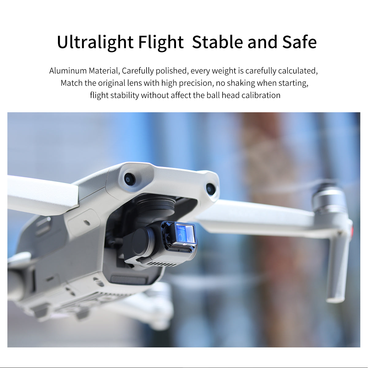 Ultralight Flight Stable and Safe: Aluminum material, carefully polished, every weight is carefully calculated, match the original lens with high precision, no shaking when starting, flight stability without affecting the ball head calibration