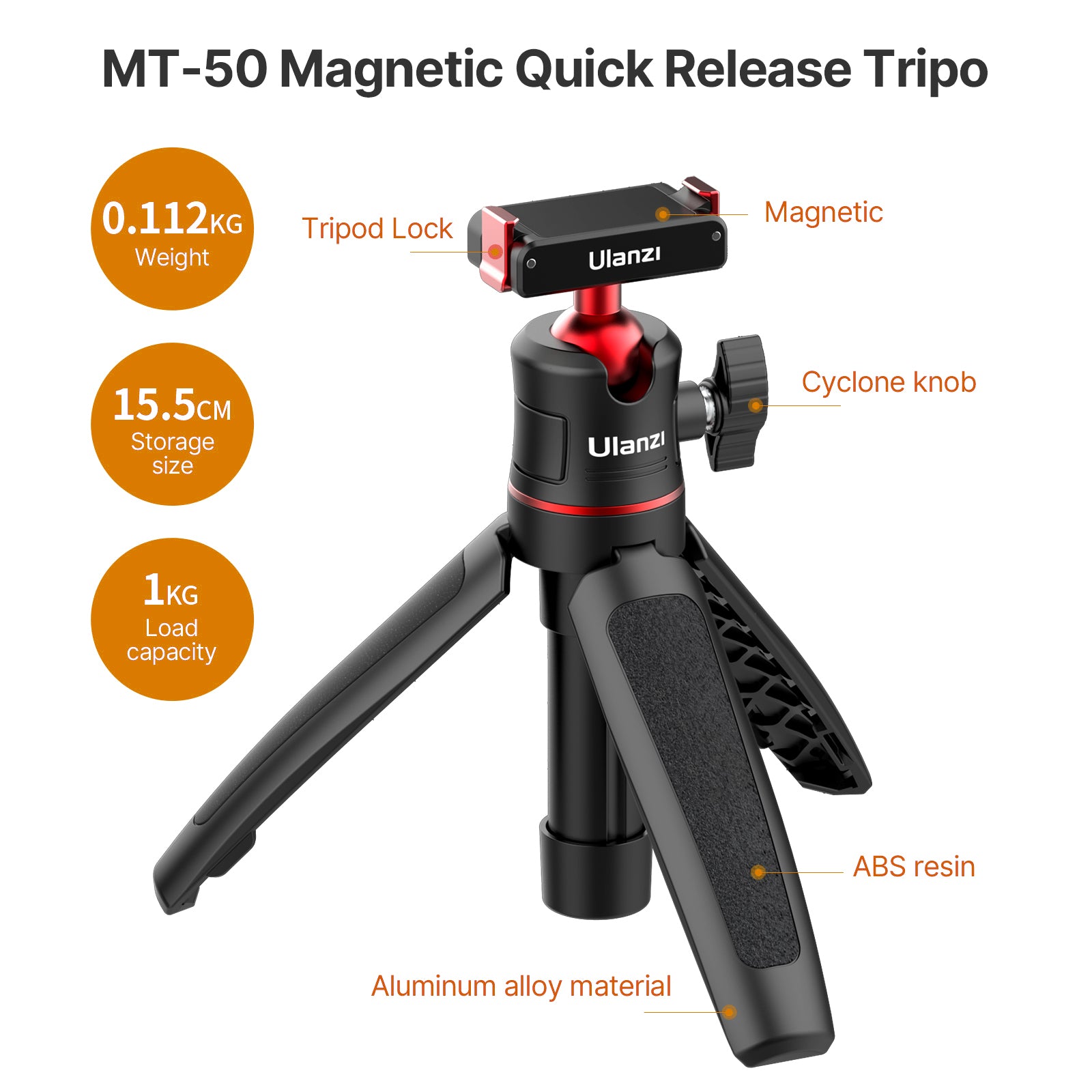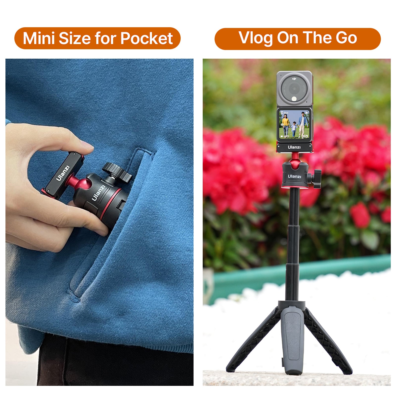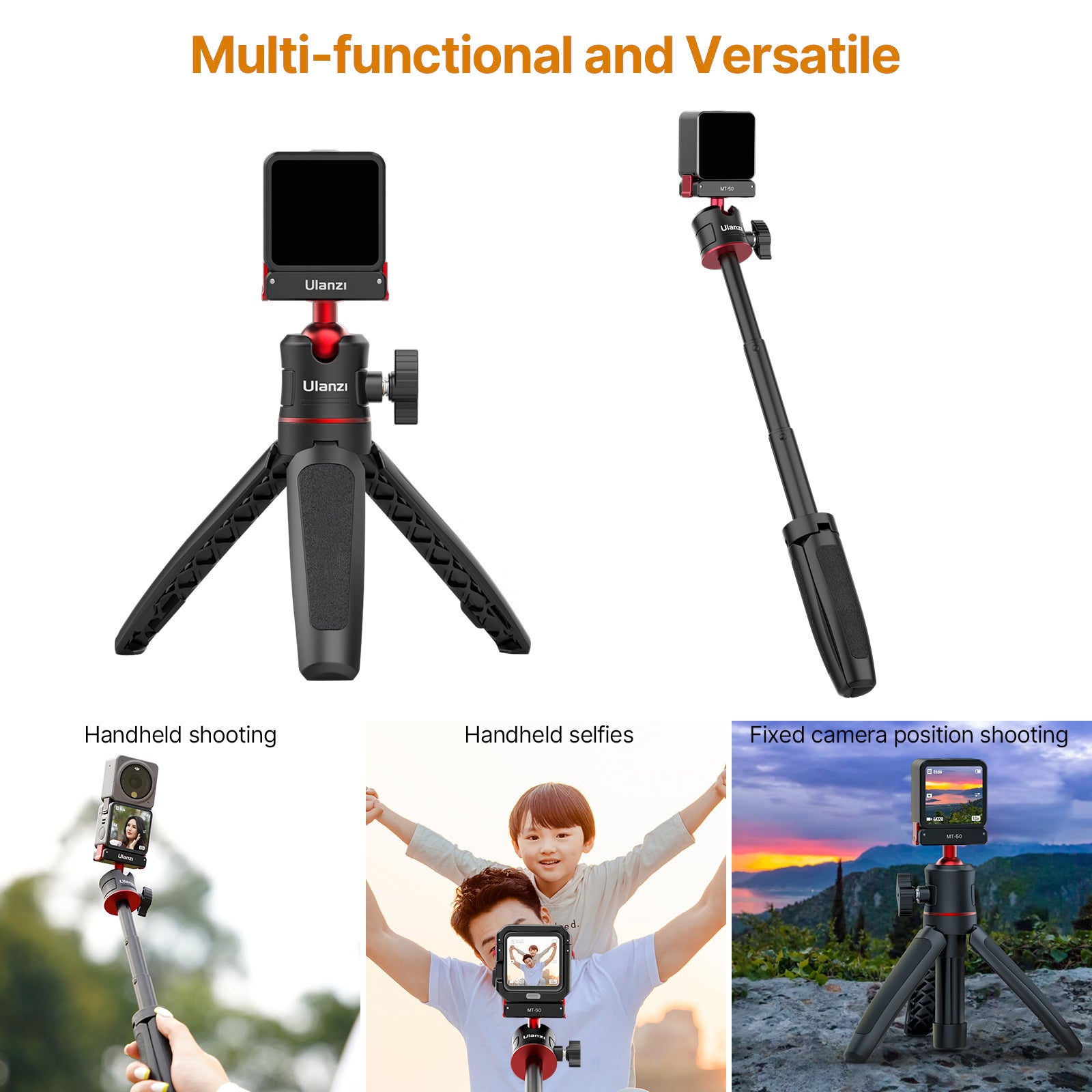 ULANZI MT-50 Extendable Magnetic Tripod for DJI Action 2 Quick Release Handle Monopod