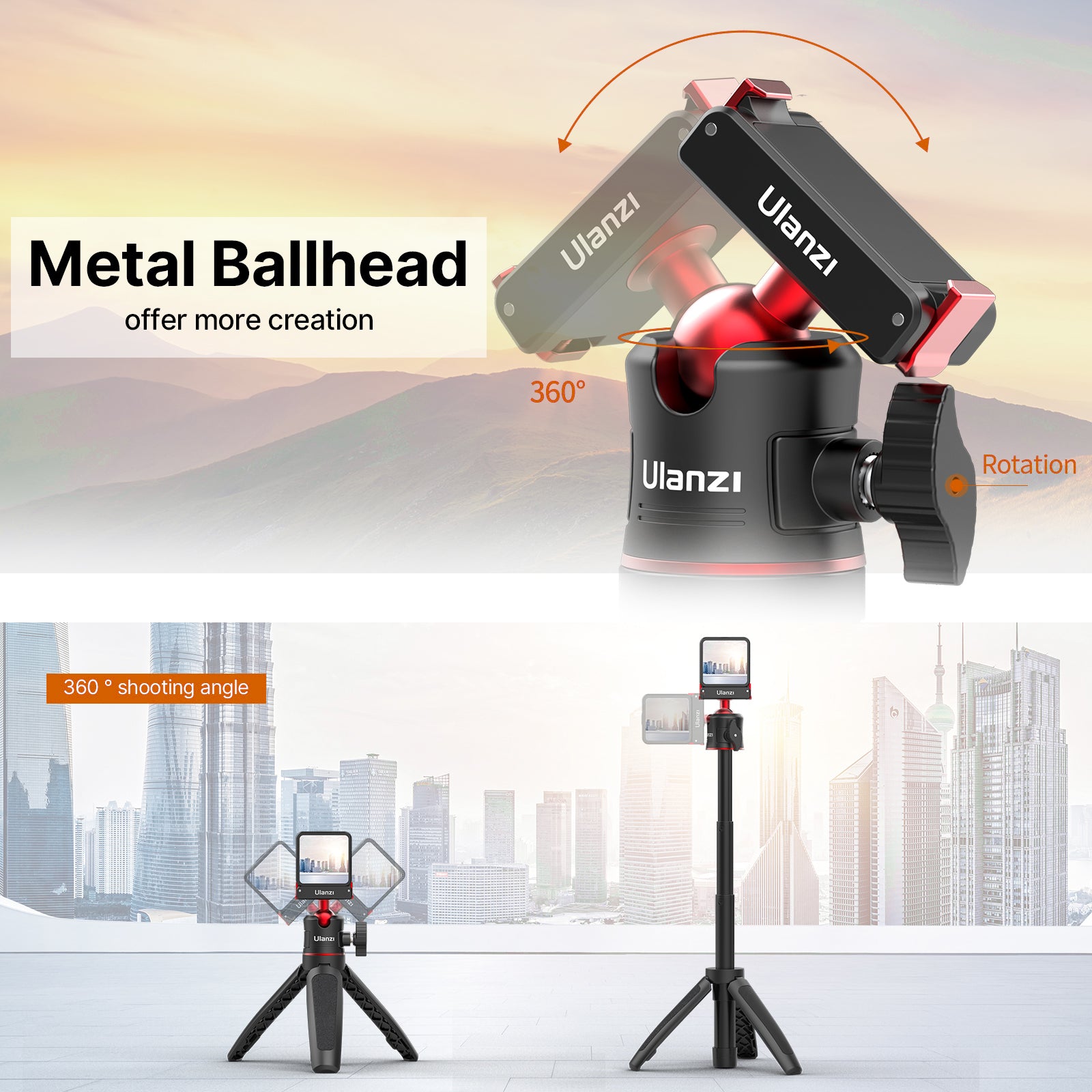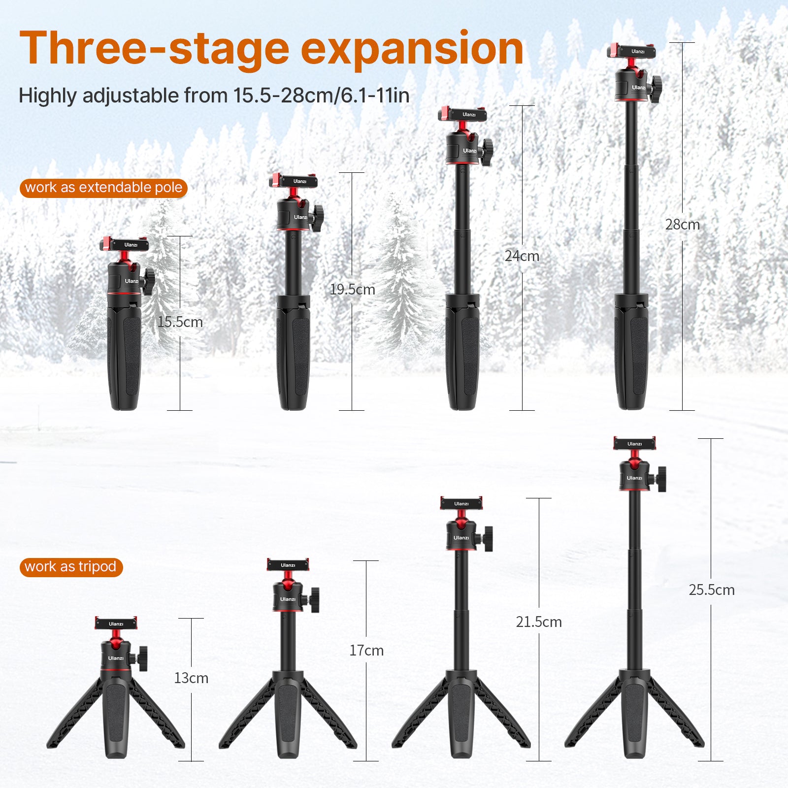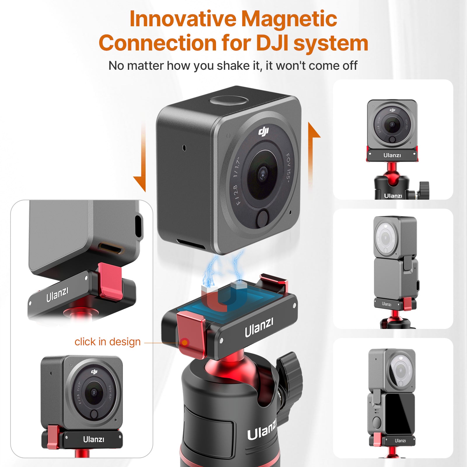 ULANZI MT-50 Extendable Magnetic Tripod for DJI Action 2 Quick Release Handle Monopod