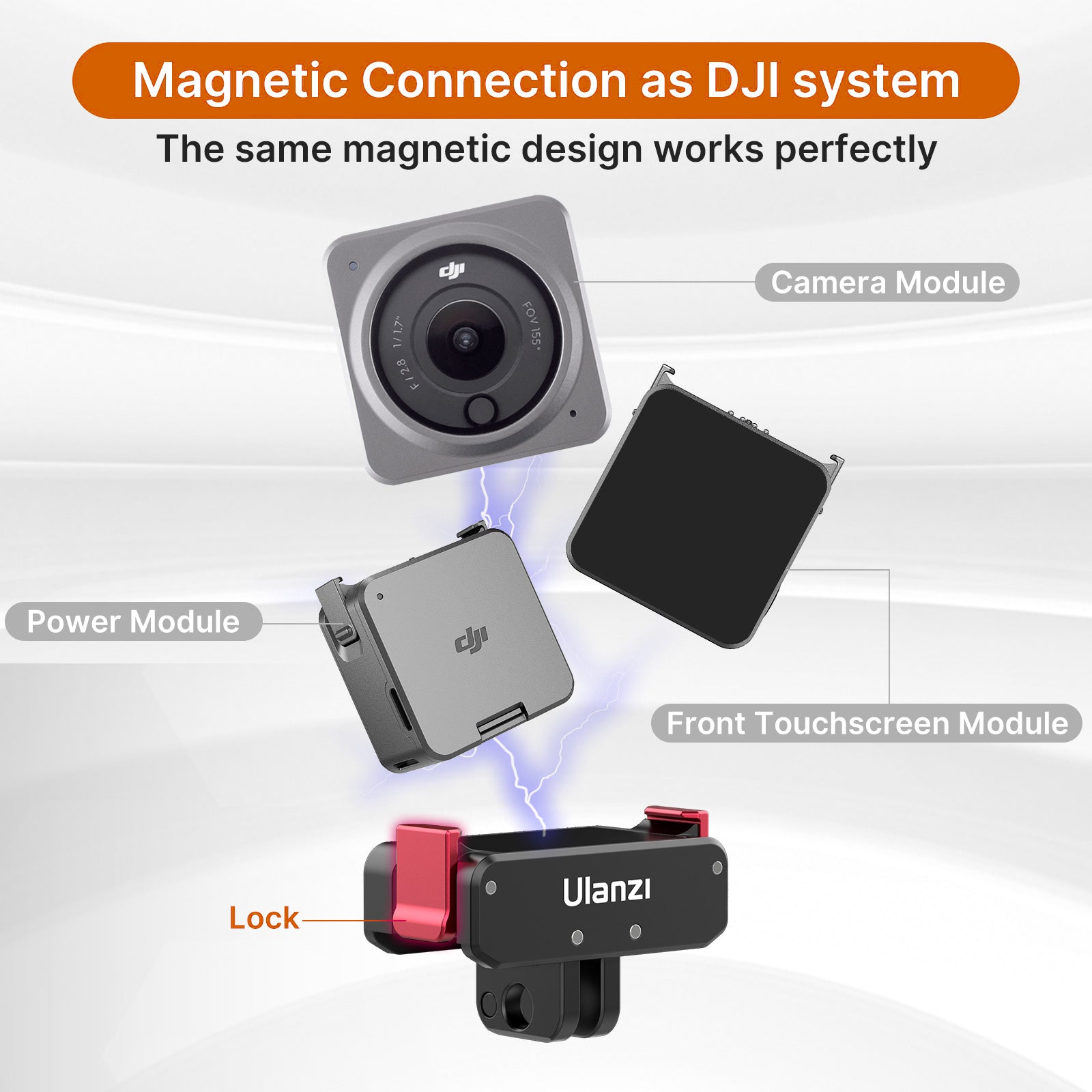 - Magnetic Connection for DJI System: Adopts Action 2's innovative magnetic design, no matter Camera Module, Power Module, or Front Touchscreen Module, which can quickly mount on the tripod