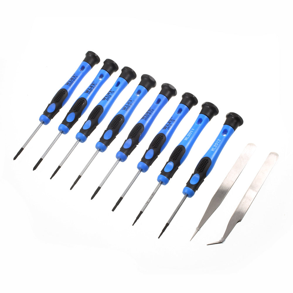 Tool set includes 8 screwdrivers and 2 tweezers