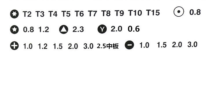 Style: 0.8, T5, T6, T7, T8, T9, 2.5mm, 2mm, T10, 3mm, T15, 1.0mm, 1.2mm, 1.4mm