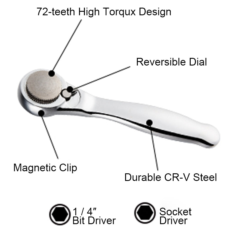- The 72-tooth reversible ratcheting mechanism uses a thumb dial for clockwise and counterclockwise operation, making this a super effortless 1/4-inch (about 0.6 cm) screwdriver set