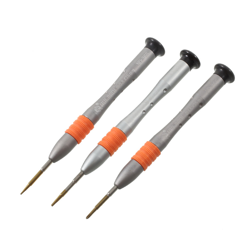 Set includes 1pc 1.2x25mm 5 point star screwdriver, 1pc 0.8x25mm 5 point star screwdriver and 1pc Phillips screwdriver