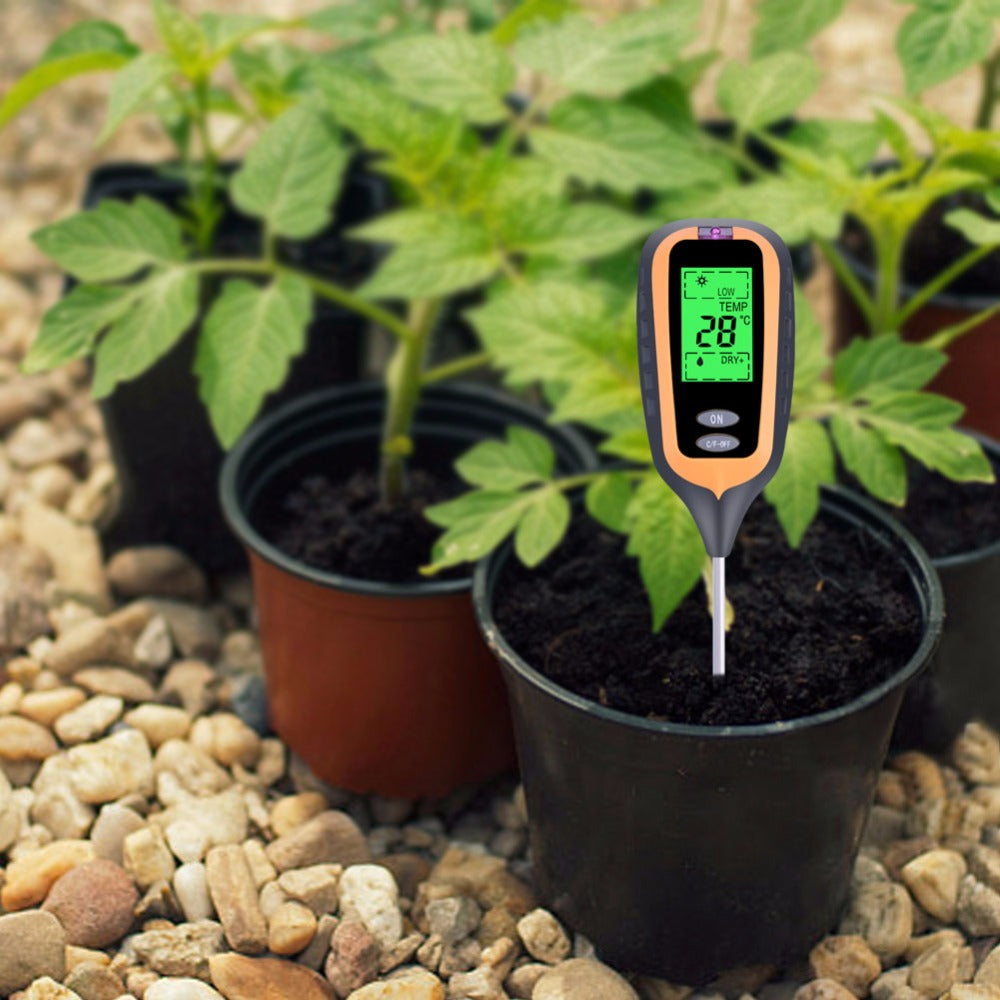 4-in-1 soil tester: Test soil temperature, PH value, moisture and sunlight level of plant, quickly help you juge when you need to contorl the ph value in the soil, water your plant and know about whether it gets adequate sunlight