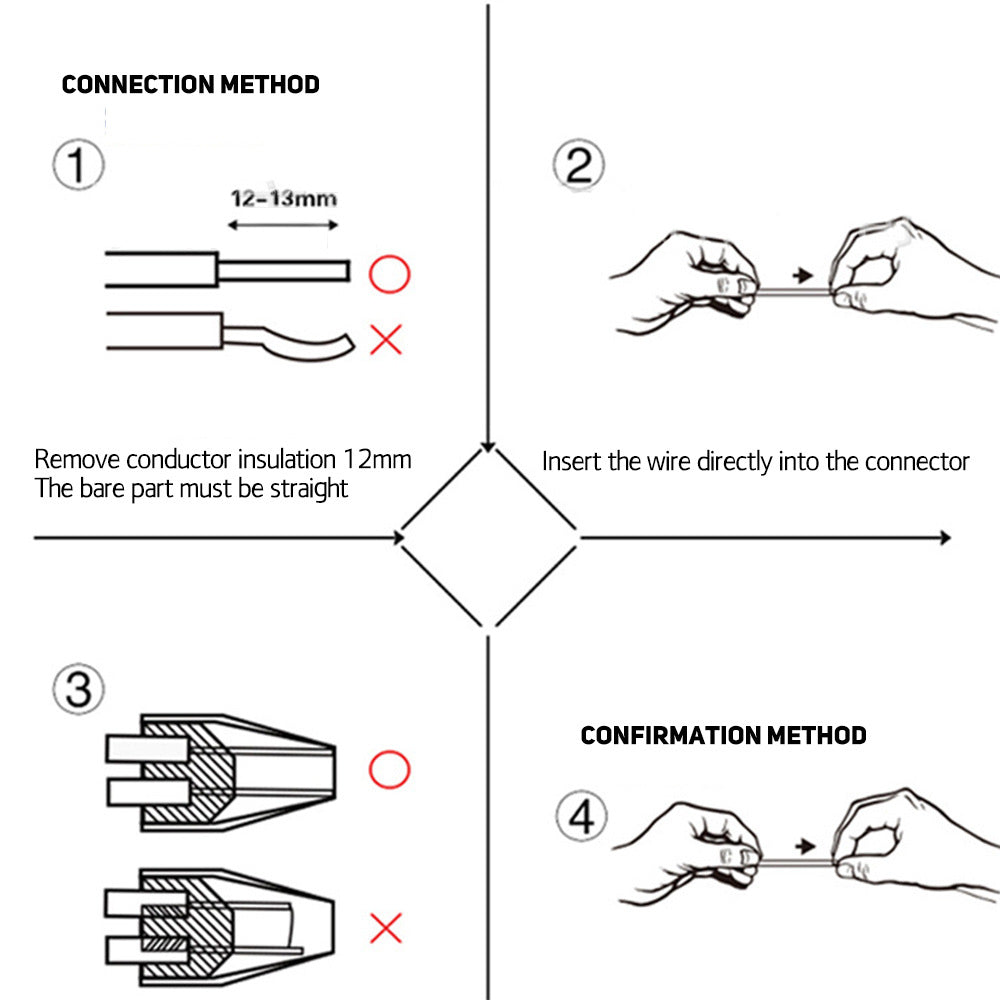 Just lift up the lever, insert the stripped wire, and press the lever closed,holds tight and makes a solid connection